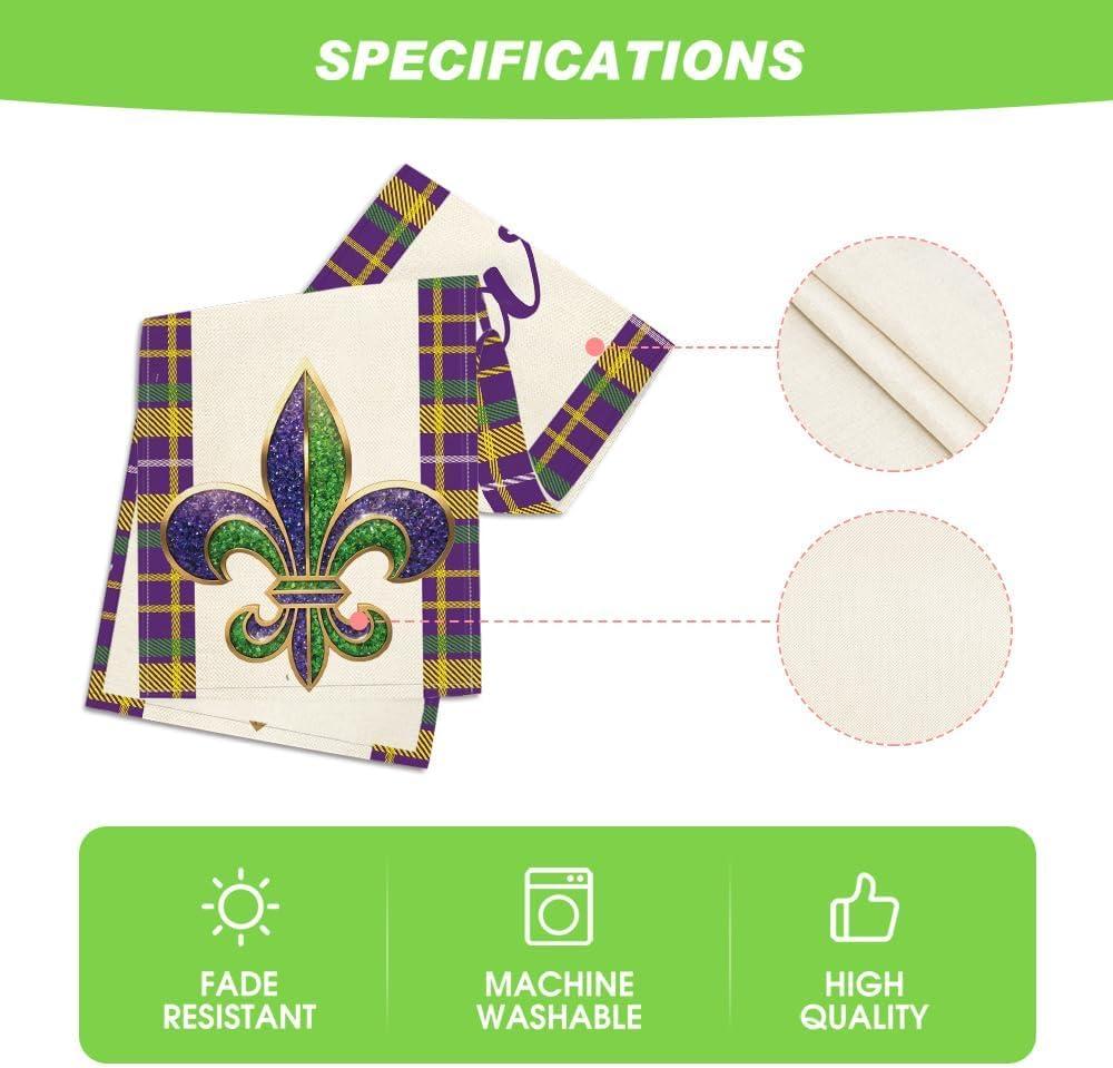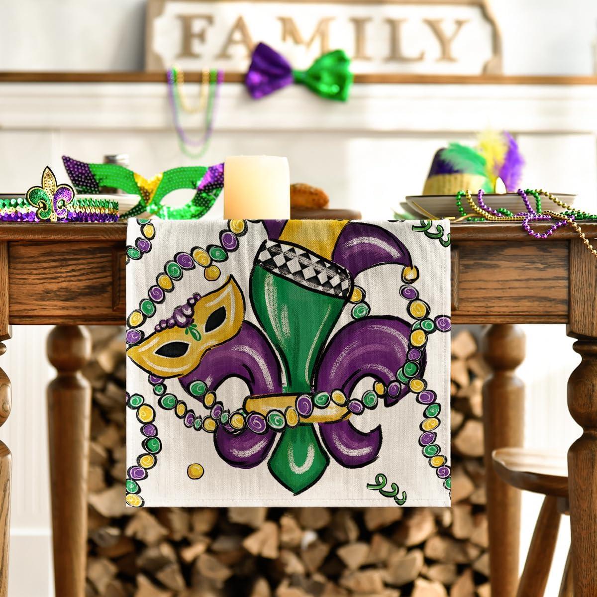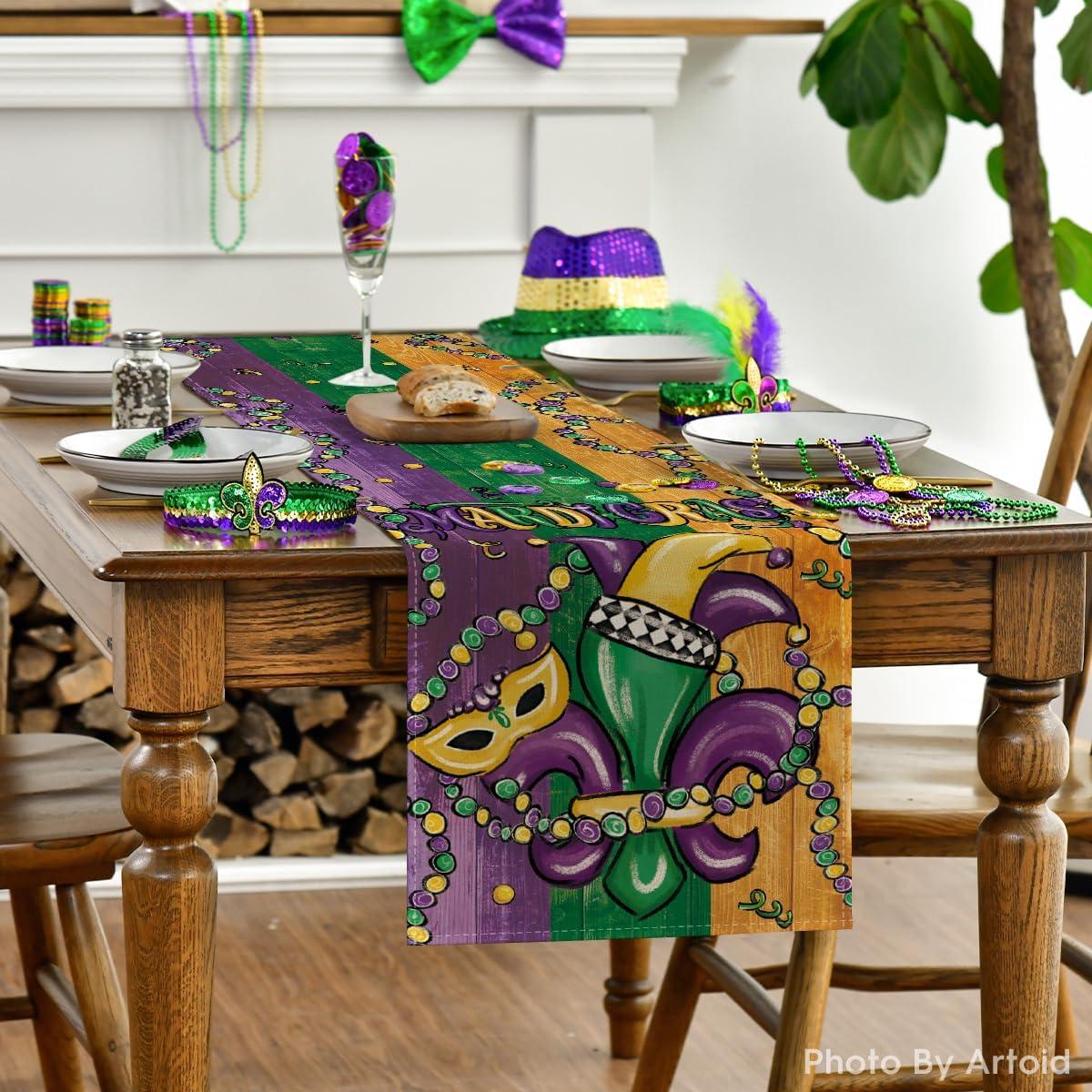 Artoid Mode Purple Green Orange Irises Masks Mardi Gras Table Runner, Seasonal Carnival Kitchen Dining Table Decoration for Home Party Decor 13×72 Inch(Purple)