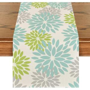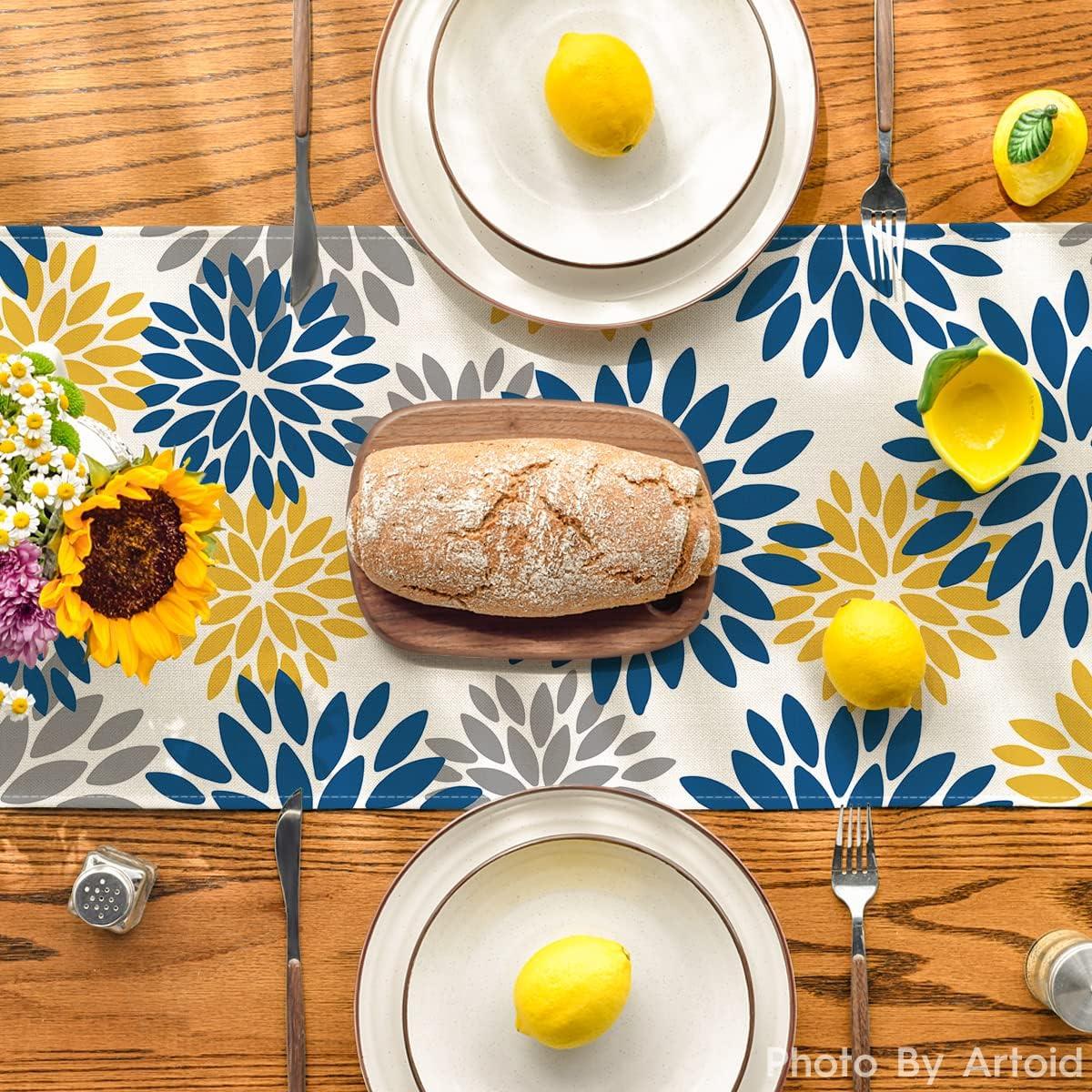 Artoid Mode Purple Dahlia Floral Pinnata Mardi Gras Table Runner, Carnival Seasonal Kitchen Dining Table Decoration for Home Party Decor 13×72 Inch(Blue/Yellow/Grey)