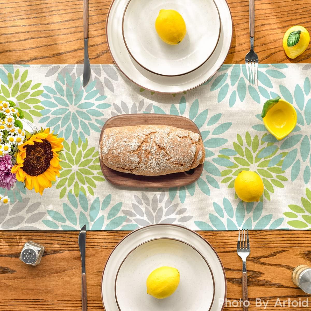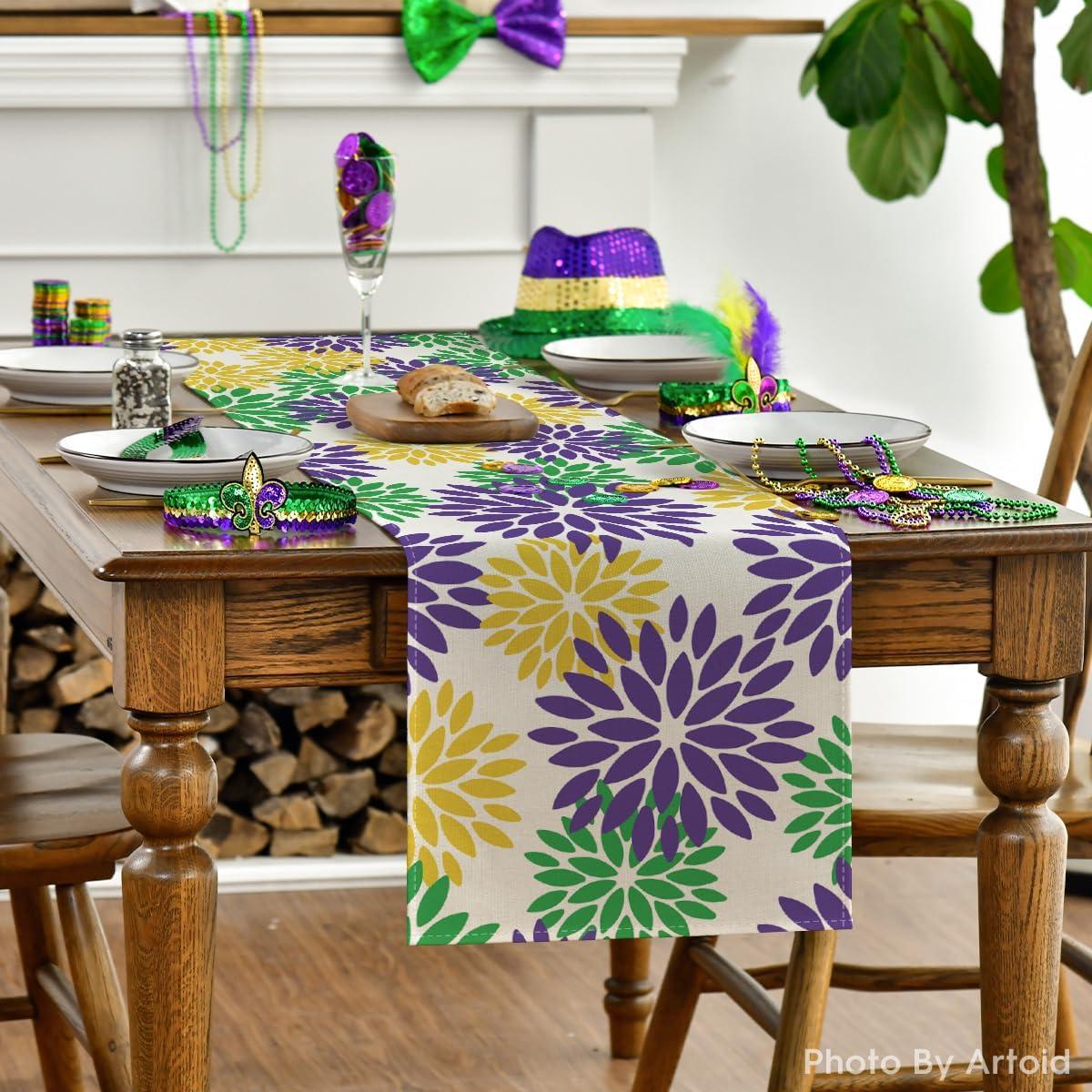 Artoid Mode Purple Dahlia Floral Pinnata Mardi Gras Table Runner, Carnival Seasonal Kitchen Dining Table Decoration for Home Party Decor 13×72 Inch(Green)