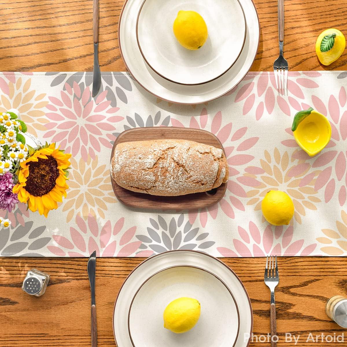 Artoid Mode Purple Dahlia Floral Pinnata Mardi Gras Table Runner, Carnival Seasonal Kitchen Dining Table Decoration for Home Party Decor 13×72 Inch(Pink/Yellow/Grey)
