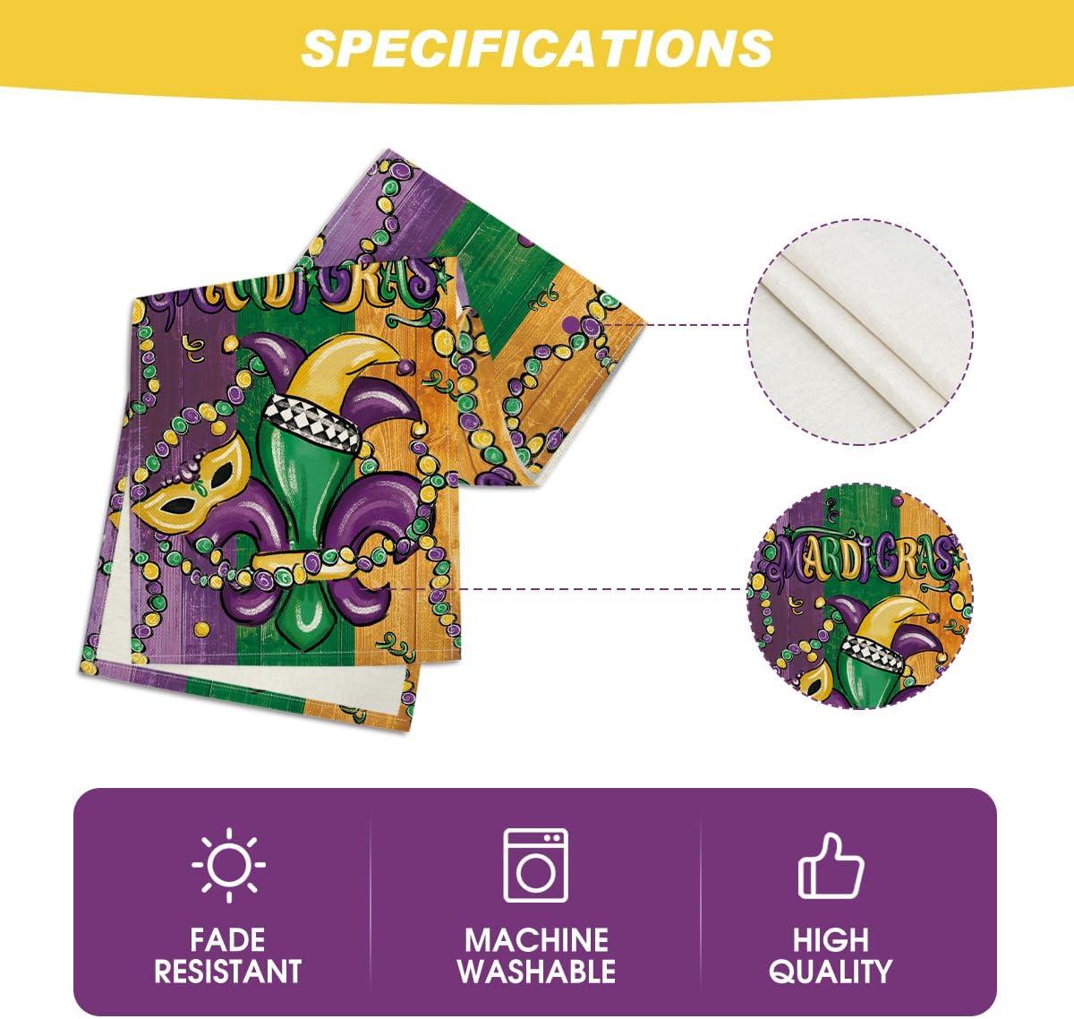 Artoid Mode Purple Green Orange Irises Masks Mardi Gras Table Runner, Seasonal Carnival Kitchen Dining Table Decoration for Home Party Decor 13×72 Inch(Purple/Green/Orange)