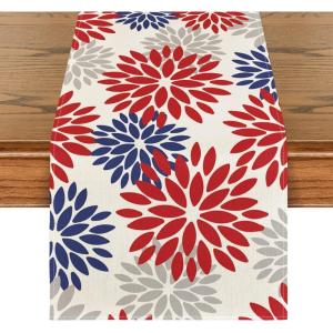 Artoid Mode Purple Dahlia Floral Pinnata Mardi Gras Table Runner, Carnival Seasonal Kitchen Dining Table Decoration for Home Party Decor 13×72 Inch(Red/Pink/Grey)