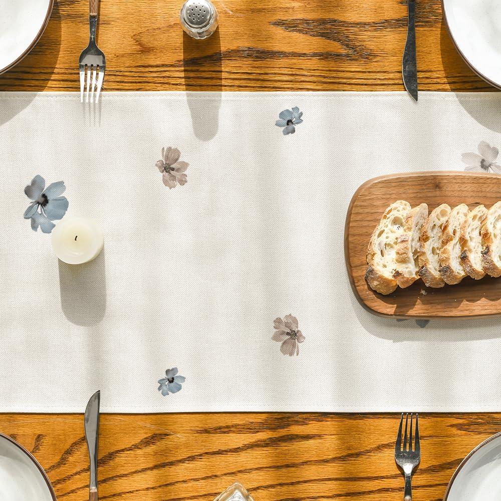 Artoid Mode Antique Herbs and Wild Flowers Summer Table Runner, Spring Fall Kitchen Dining Table Decoration for Home Party 13×72 Inch(Off White)