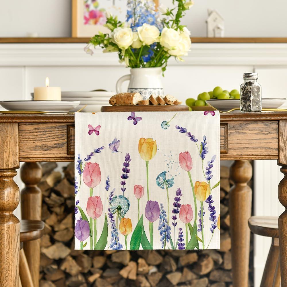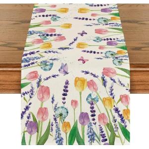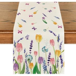 Artoid Mode Tulip Lavender Summer Table Runner, Seasonal Spring Kitchen Dining Table Decoration for Home Party Decor 13×72 Inch(Tulip)