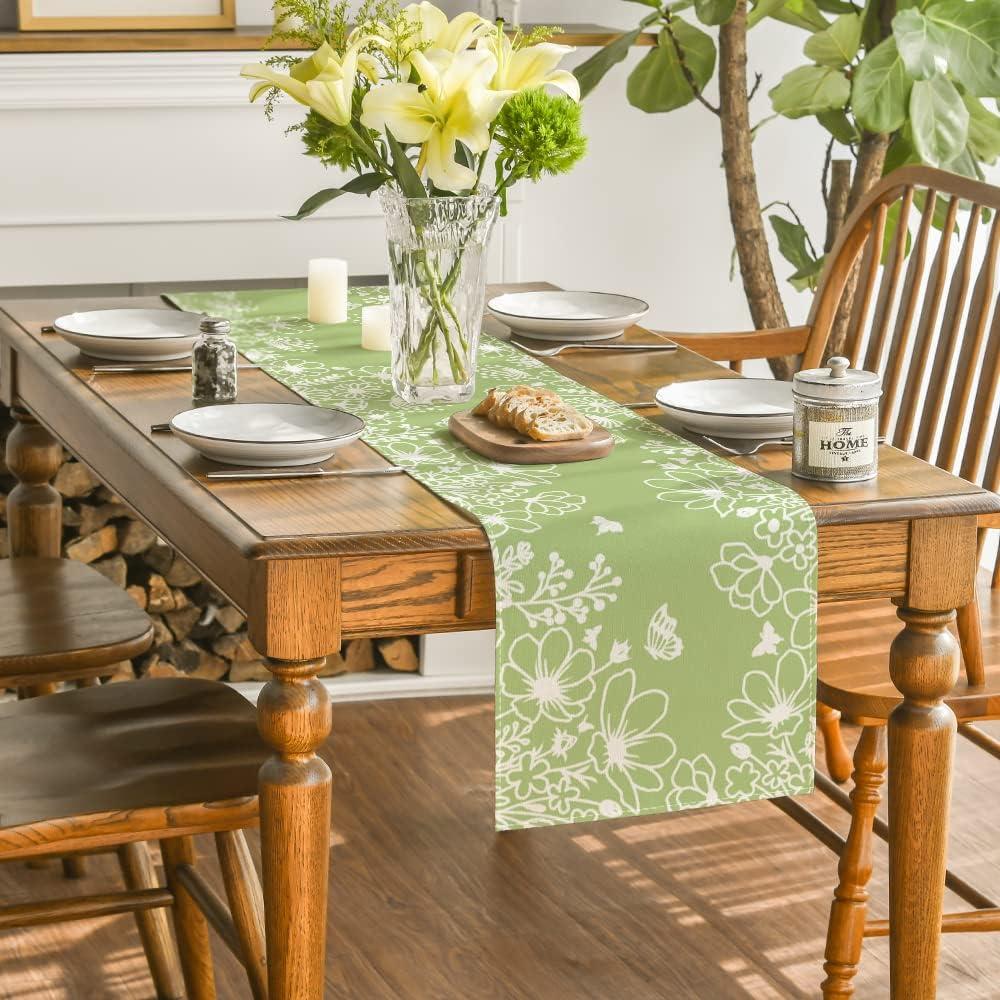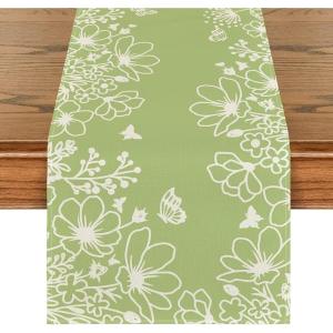 Artoid Mode Pink Bloom Flowers Butterfly Spring Table Runner, Seasonal Holiday Kitchen Dining Table Decoration for Home Party Indoor 13×72 Inch(Green)