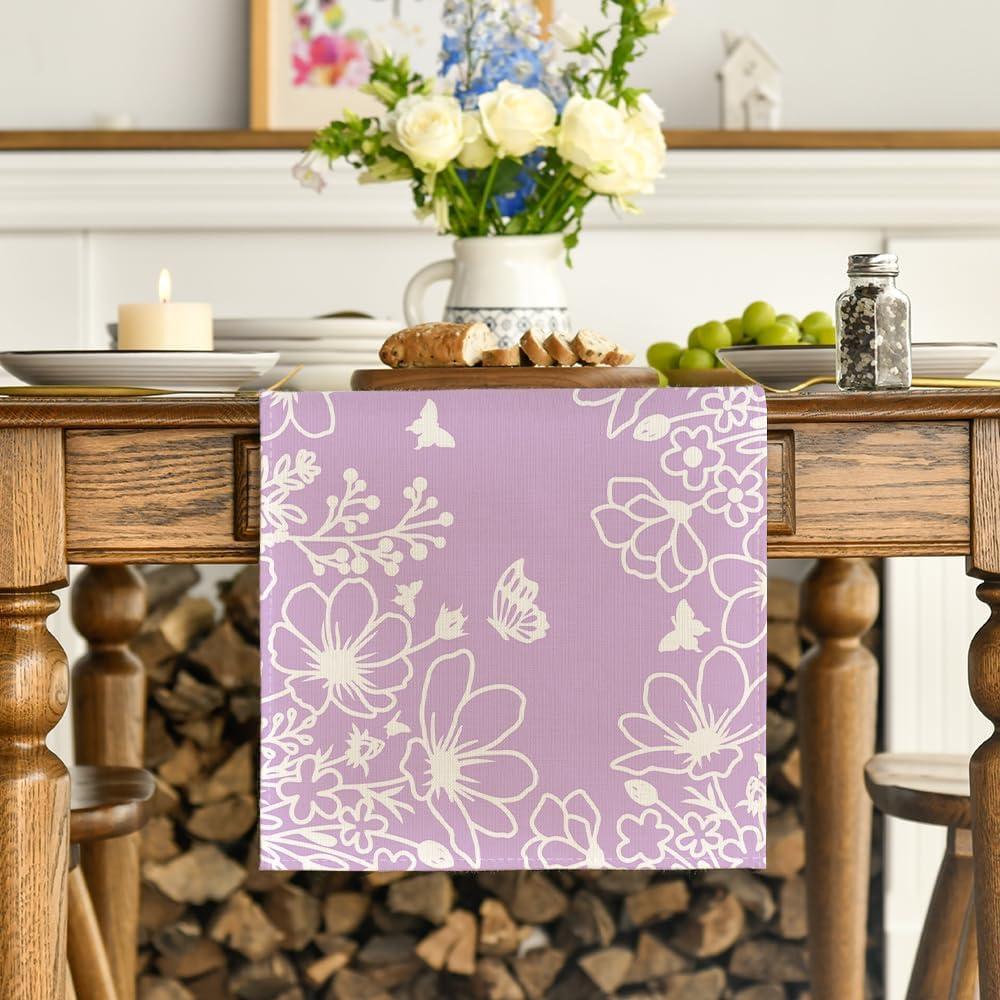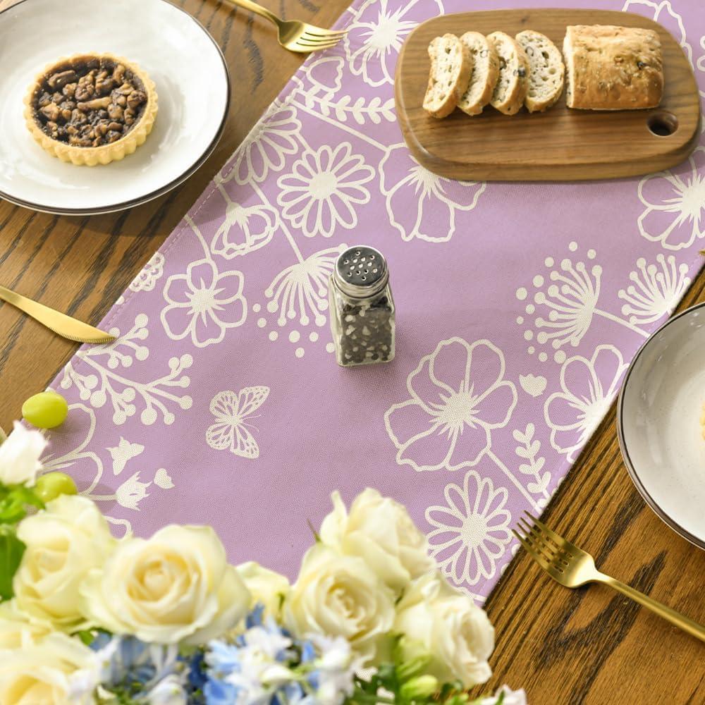 Artoid Mode Pink Bloom Flowers Butterfly Spring Table Runner, Seasonal Holiday Kitchen Dining Table Decoration for Home Party Indoor 13×72 Inch(Purple)