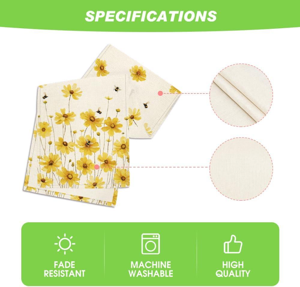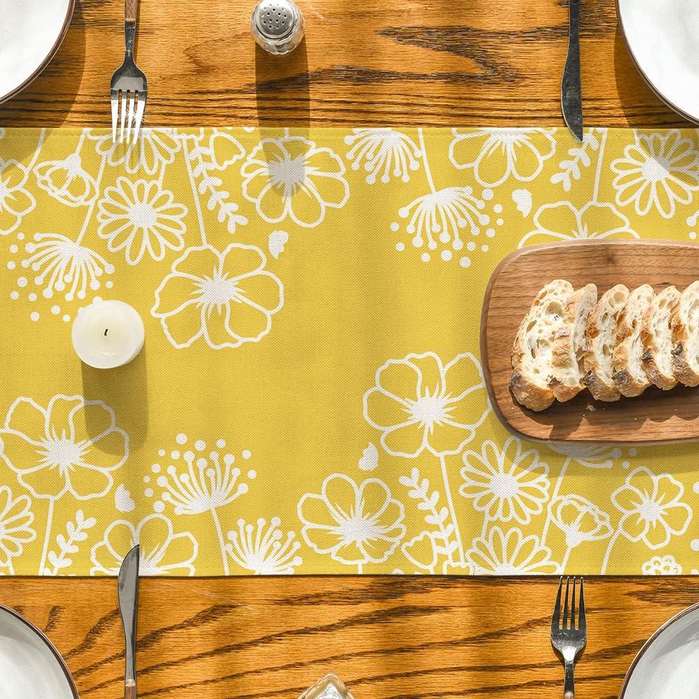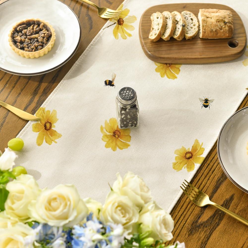 Artoid Mode Yellow Flowers Daisy Bees Summer Table Runner, Seasonal Easter Fall Holiday Kitchen Dining Table Decoration for Home Party Indoor 13×72 Inch(Yellow)