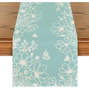 Artoid Mode Monochrome Sketch Birds and Flowers Spring Table Runner, Seasonal Summer Fall Kitchen Dining Table Decoration for Home Party Decor 13×72 Inch(Blue/Beige)