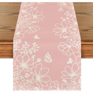 Artoid Mode Pink Bloom Flowers Butterfly Spring Table Runner, Seasonal Holiday Kitchen Dining Table Decoration for Home Party Indoor 13×72 Inch(Pink)