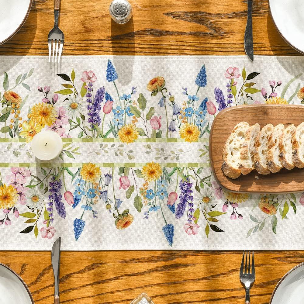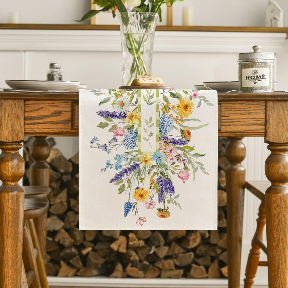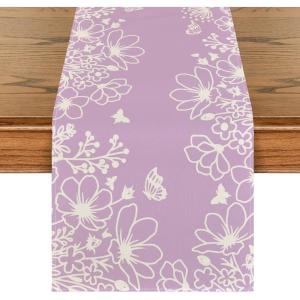 Artoid Mode Bloom Flowers Florals Lavender Summer Table Runner, Seasonal Spring Holiday Kitchen Dining Table Decoration for Home Party Indoor 13×72 Inch(Beige)