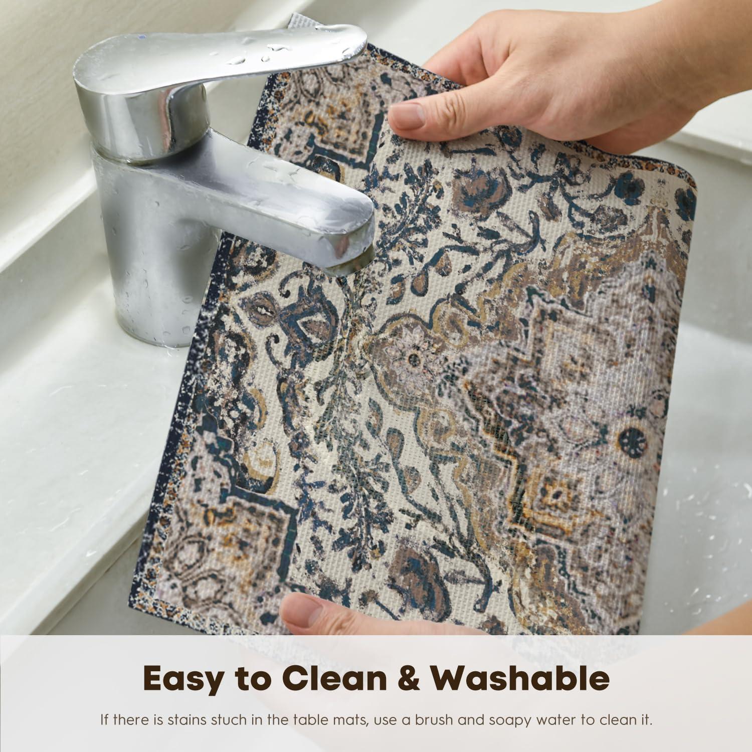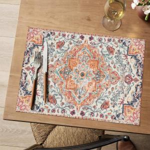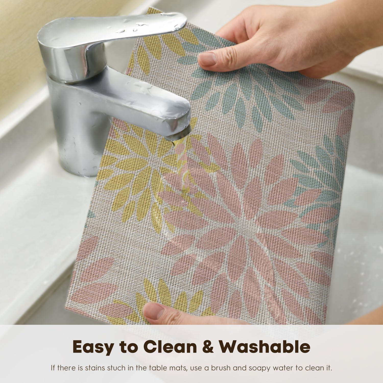 Artoid Mode Floral Vinyl Placemats Set of 4, 12×18 Inch Heat Resistant Washable Non-Slip Plistic PVC Place Mats for Party Kitchen Dining Decor, Pink Blue(Orange)