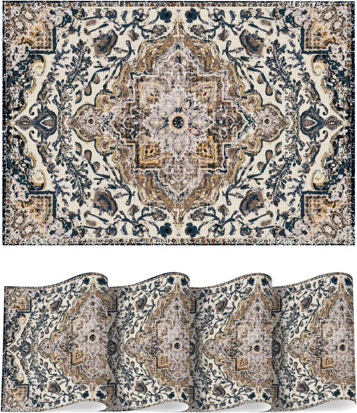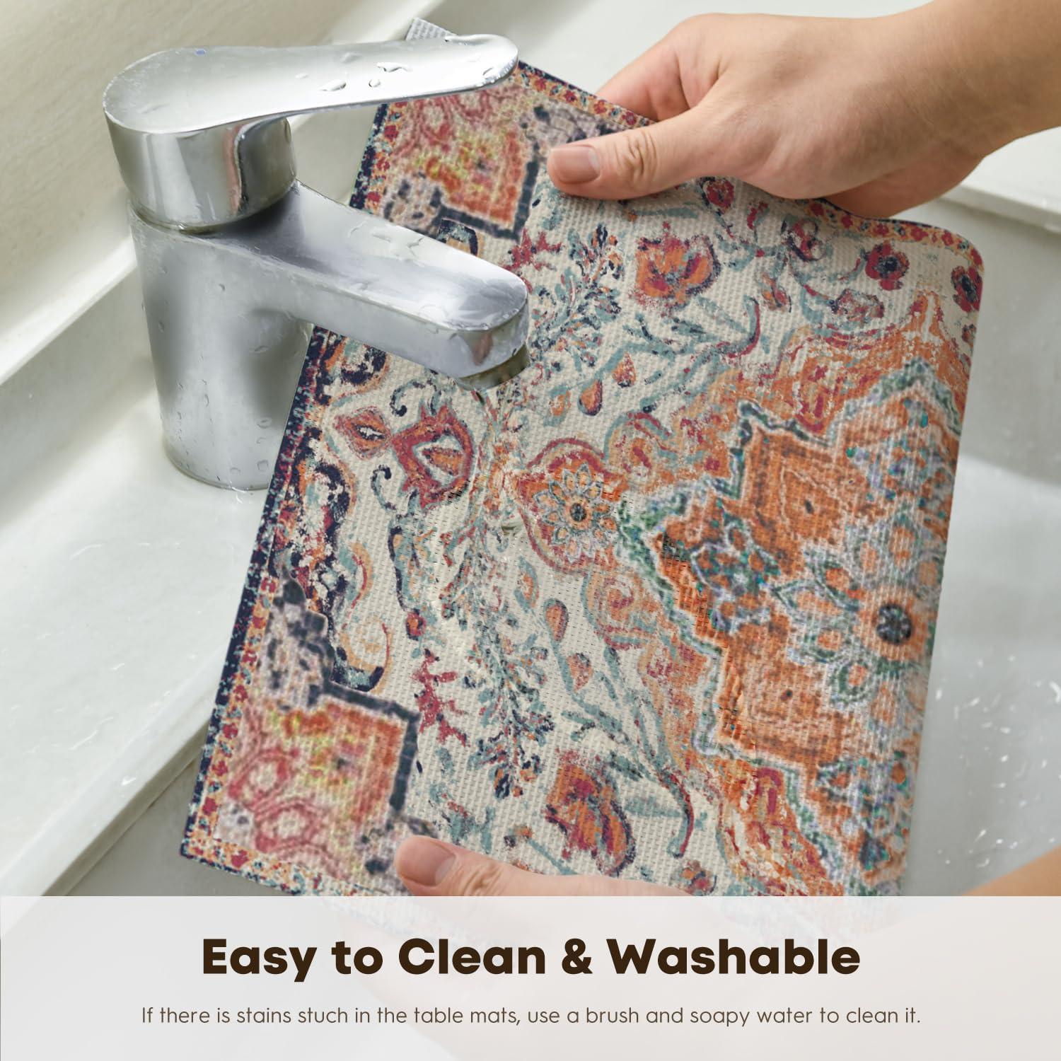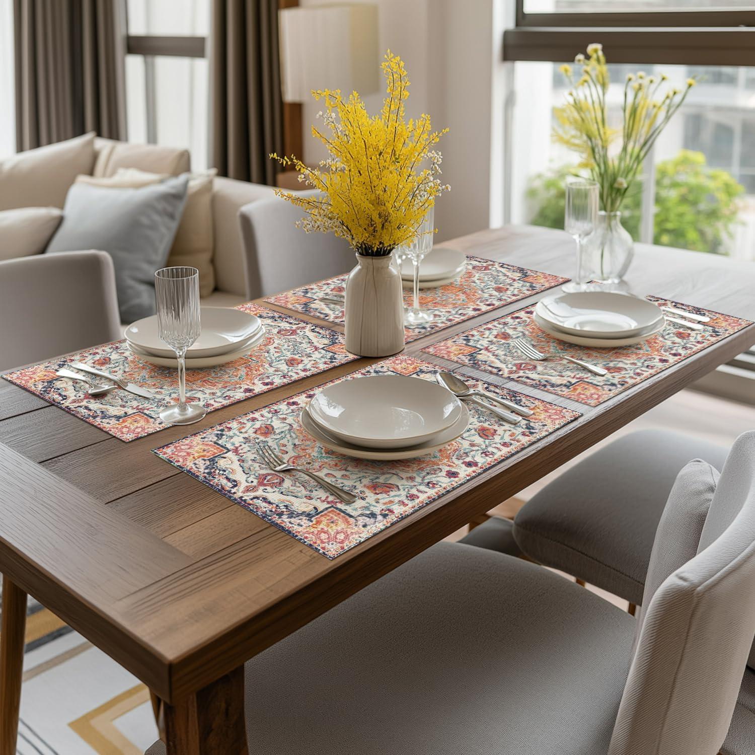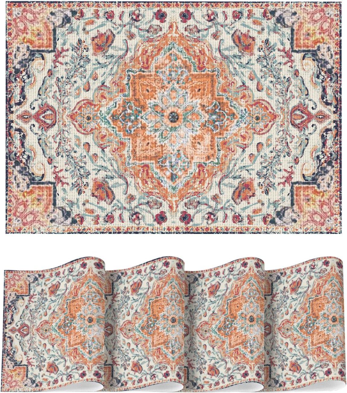 Artoid Mode Boho Vinyl Placemats Set of 4, Washable Non-Slip Woven Plastic PVC Table Mats for Party Kitchen Dining Decor, 12×18 Inch(Orange)