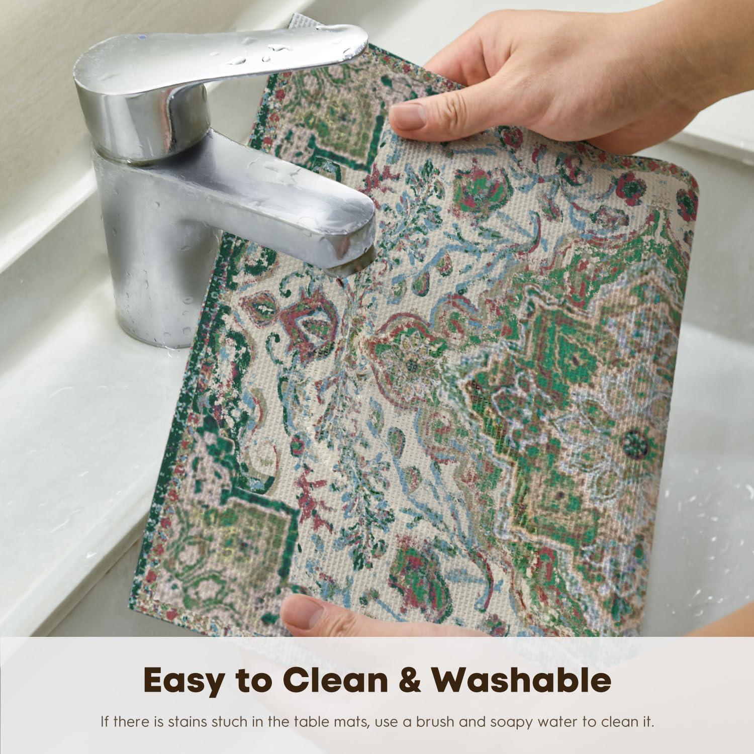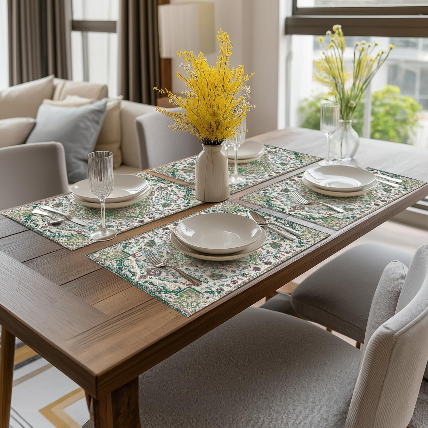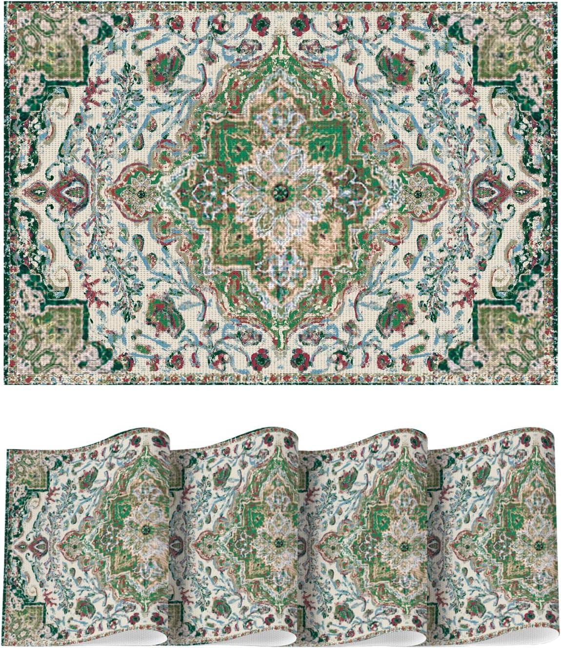 Artoid Mode Boho Vinyl Placemats Set of 4, Washable Non-Slip Woven Plastic PVC Table Mats for Party Kitchen Dining Decor, 12×18 Inch(Green)