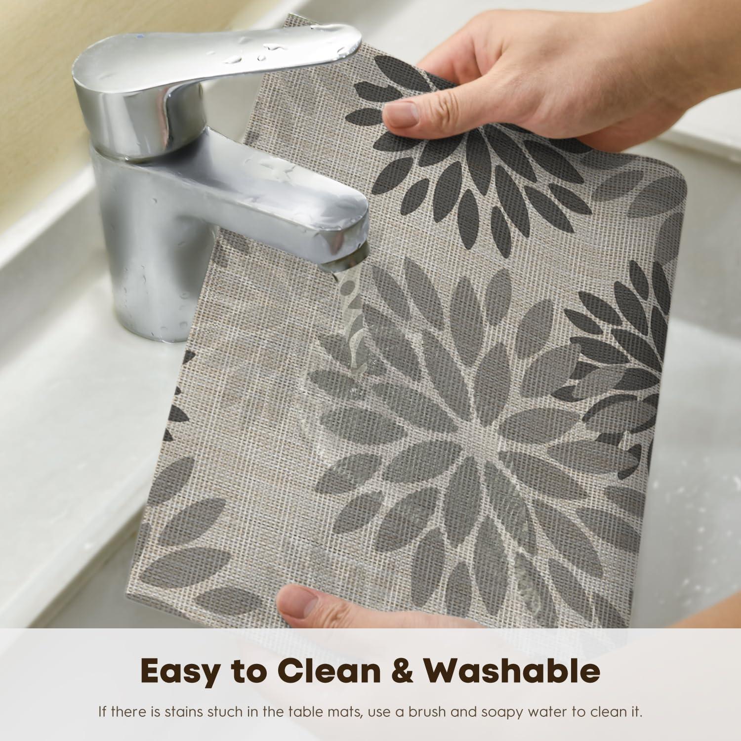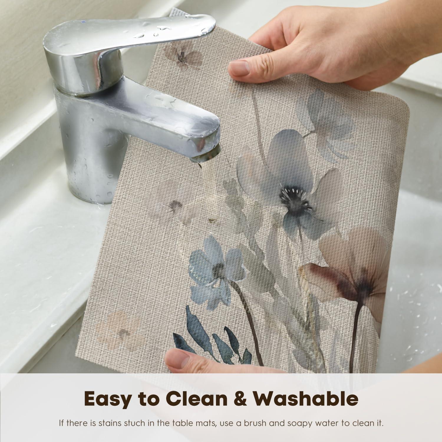 Artoid Mode Floral Vinyl Placemats Set of 4, 12×18 Inch Heat Resistant Washable Non-Slip Plistic PVC Place Mats for Party Kitchen Dining Decor, Pink Blue(Gray)