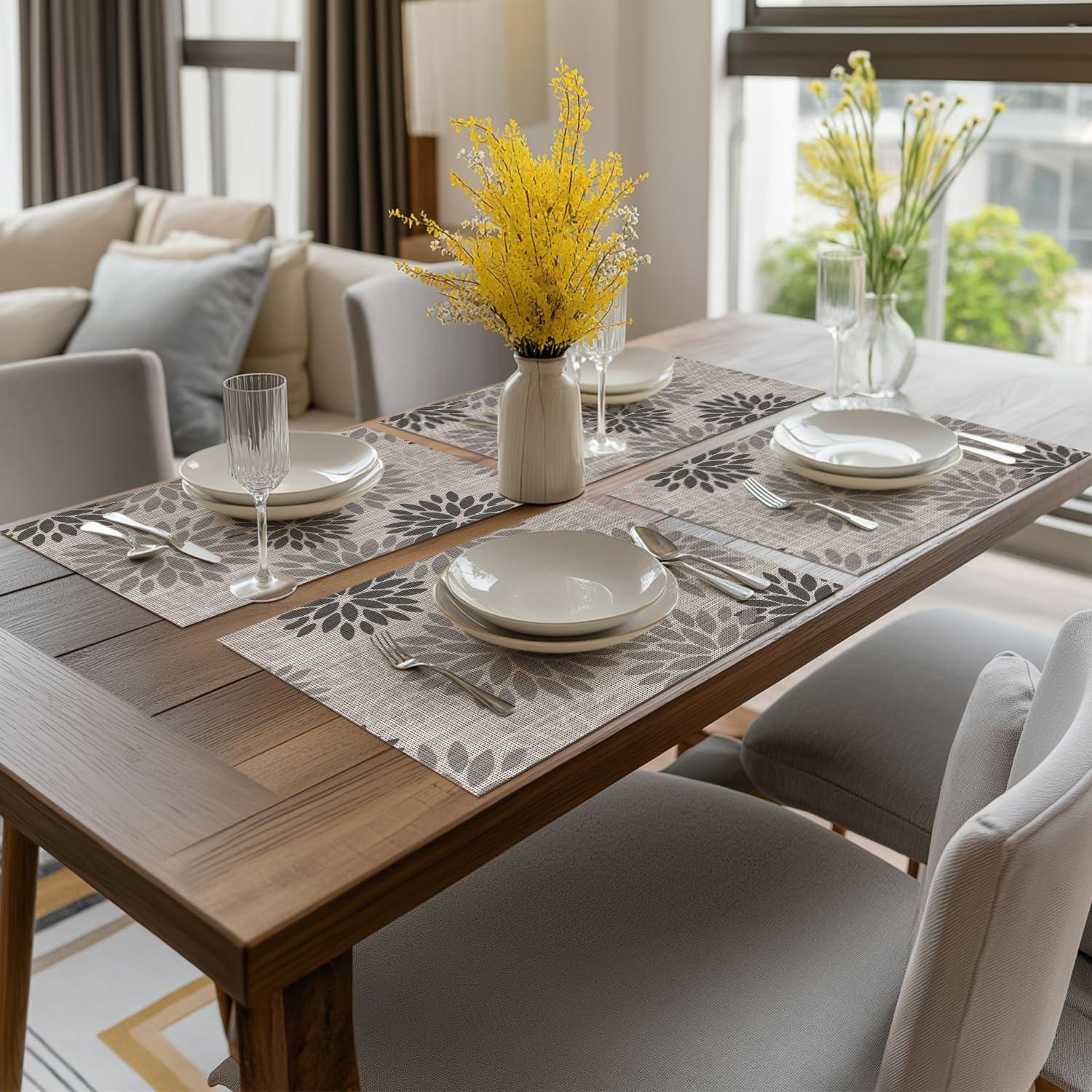 Artoid Mode Boho Vinyl Placemats Set of 4, Washable Non-Slip Woven Plastic PVC Table Mats for Party Kitchen Dining Decor, 12×18 Inch(Gray)