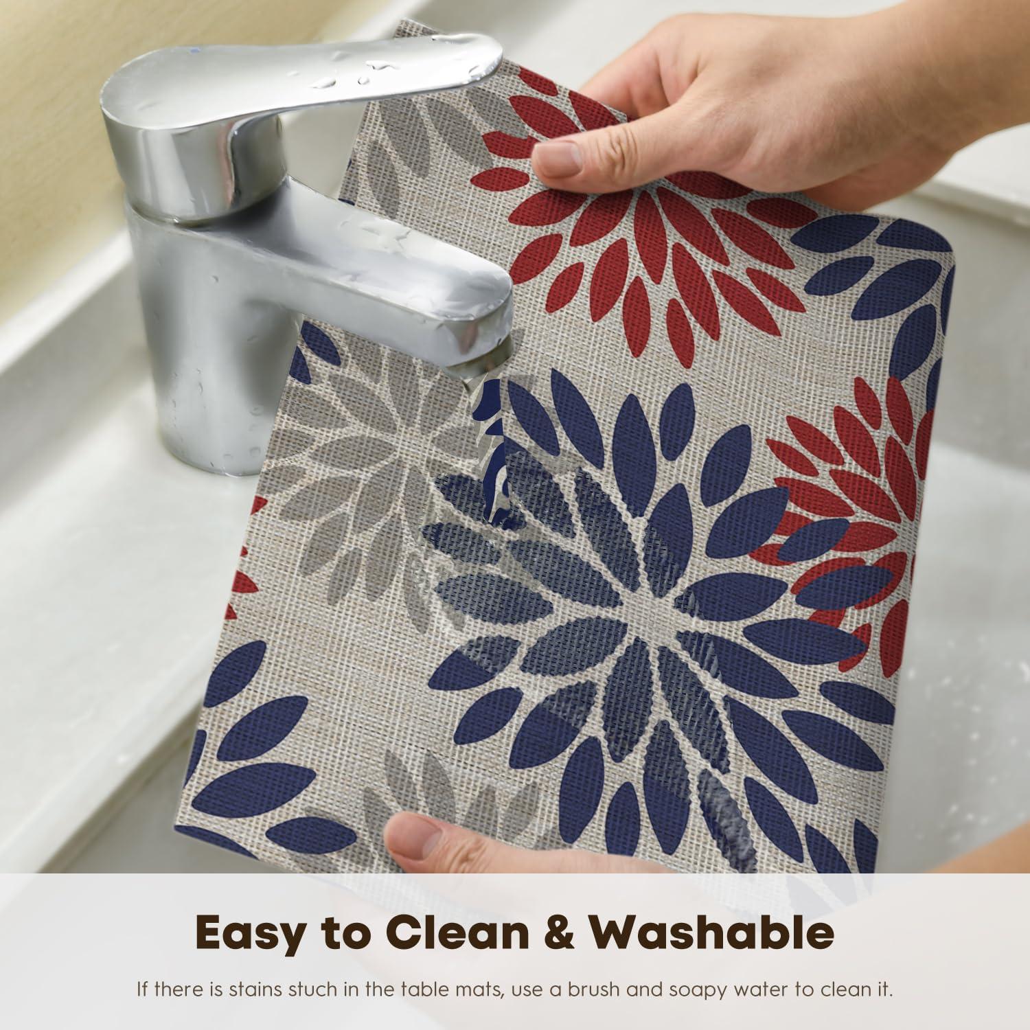 Artoid Mode Floral Vinyl Placemats Set of 4, 12×18 Inch Heat Resistant Washable Non-Slip Plistic PVC Place Mats for Party Kitchen Dining Decor, Pink Blue(Red/Blue)