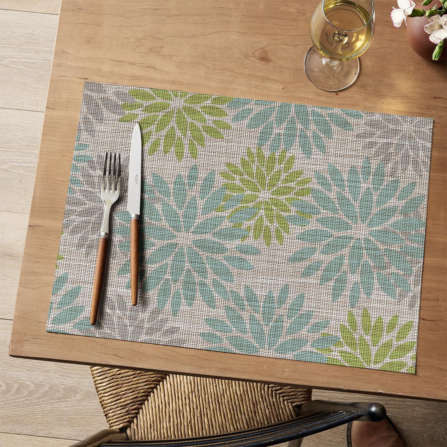 Artoid Mode Floral Vinyl Placemats Set of 4, 12×18 Inch Heat Resistant Washable Non-Slip Plistic PVC Place Mats for Party Kitchen Dining Decor, Pink Blue(Sage)