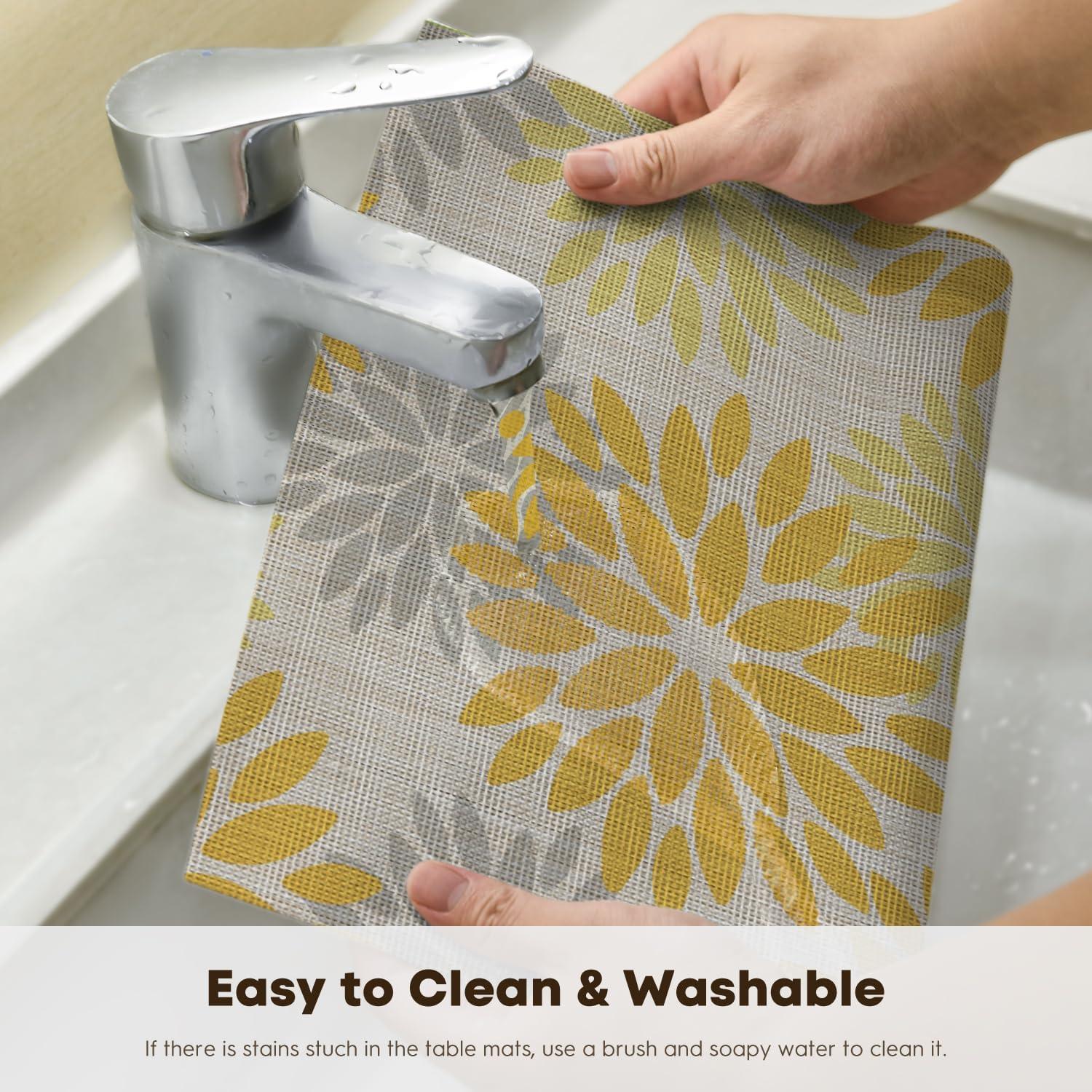 Artoid Mode Floral Vinyl Placemats Set of 4, 12×18 Inch Heat Resistant Washable Non-Slip Plistic PVC Place Mats for Party Kitchen Dining Decor, Pink Blue(Yellow)