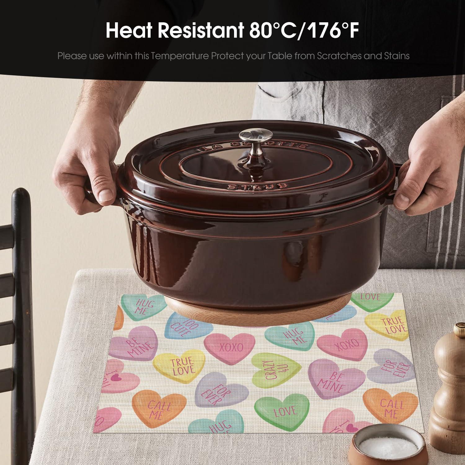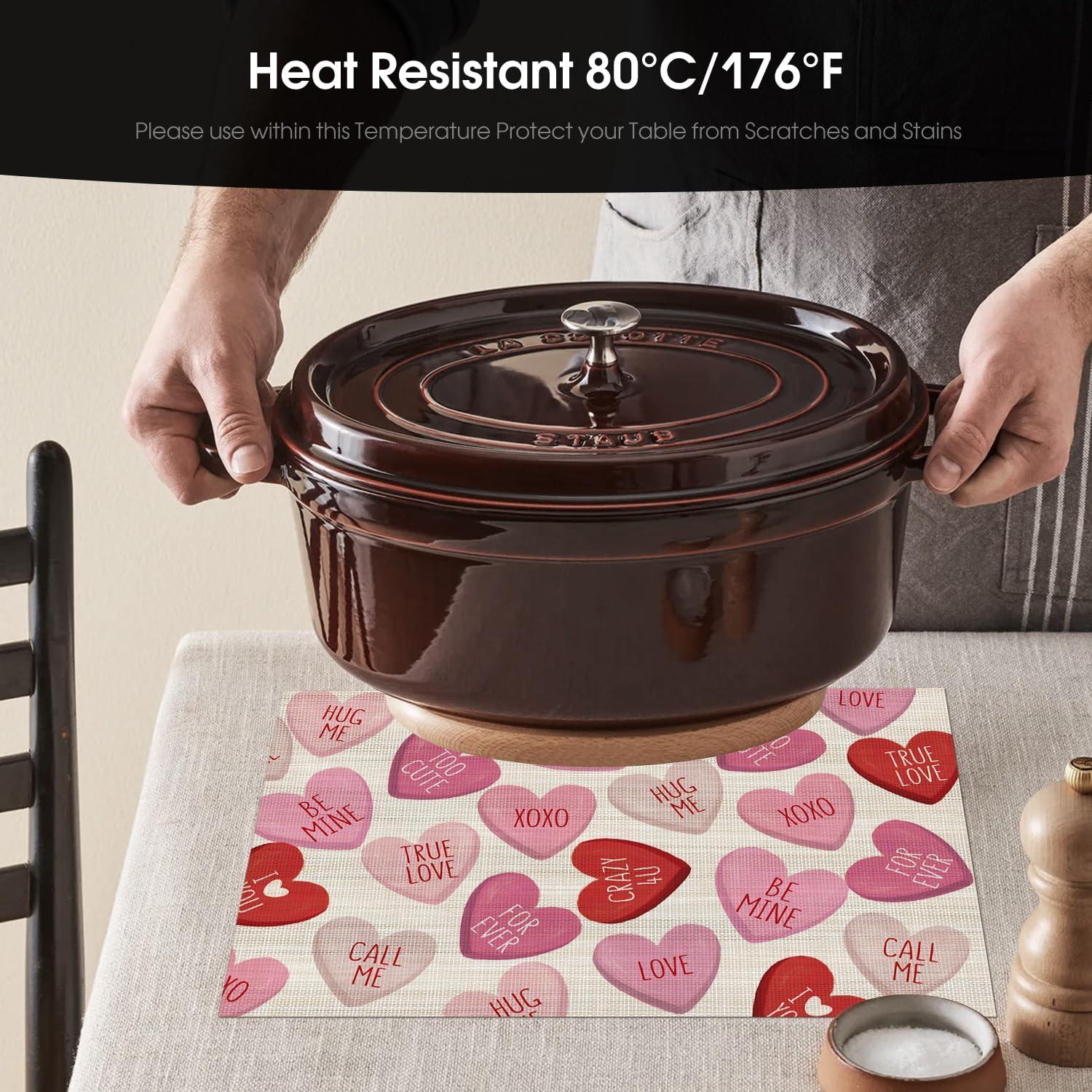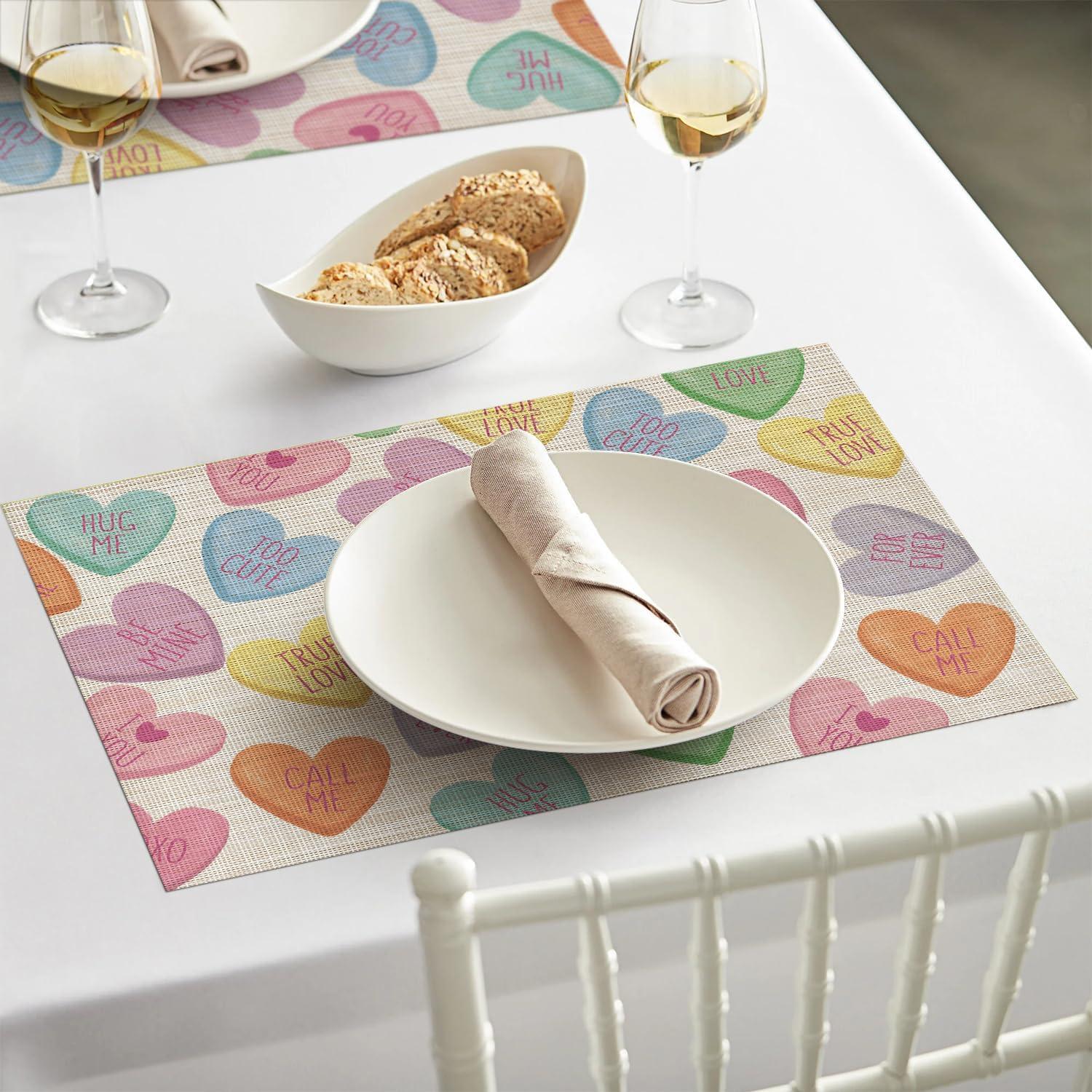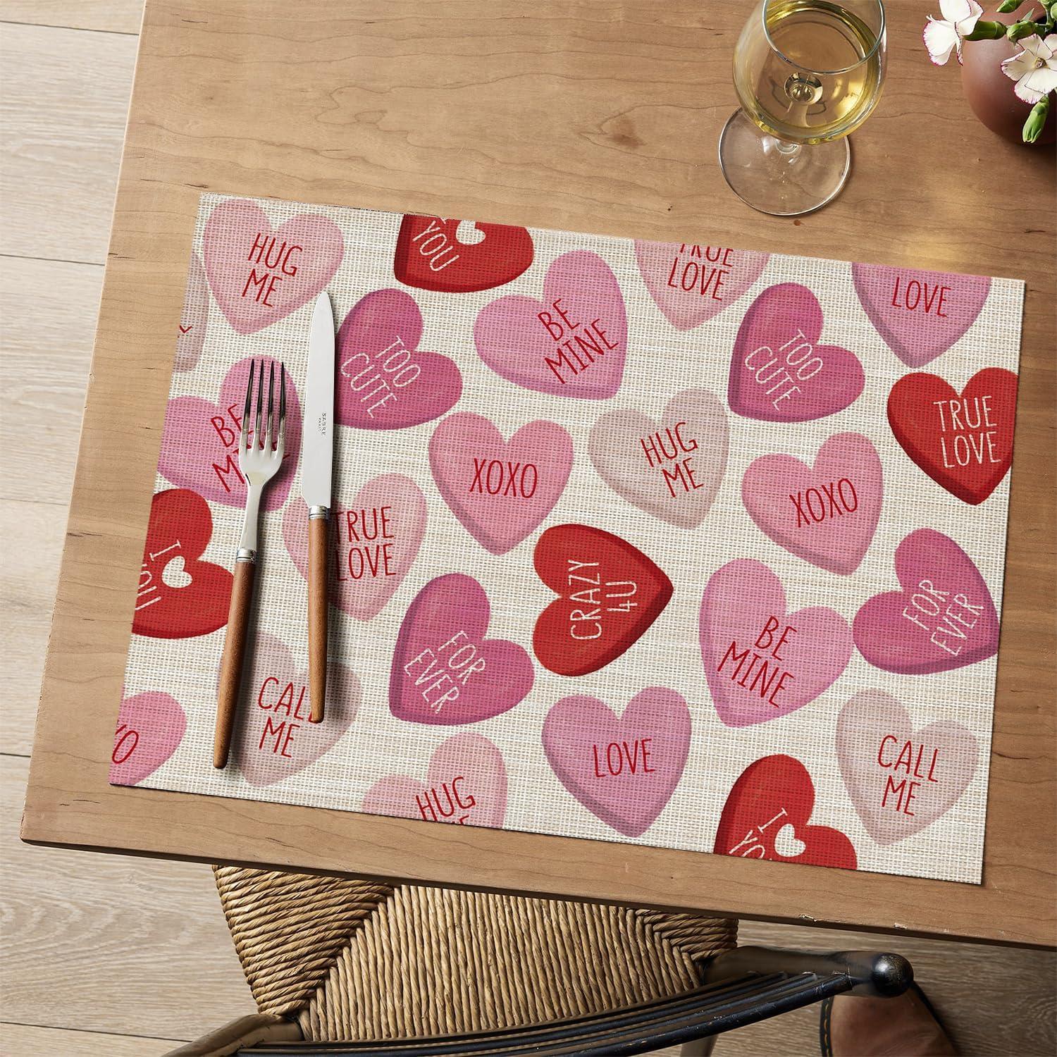 Artoid Mode XOXO Hearts Vinyl Placemats Set of 4, 12×18 Inch Wipeable Non-Slip PVC Place Mats for Party Kitchen Dining Decor(Pink)