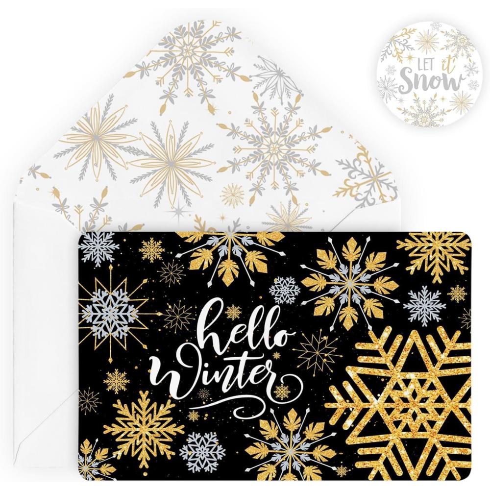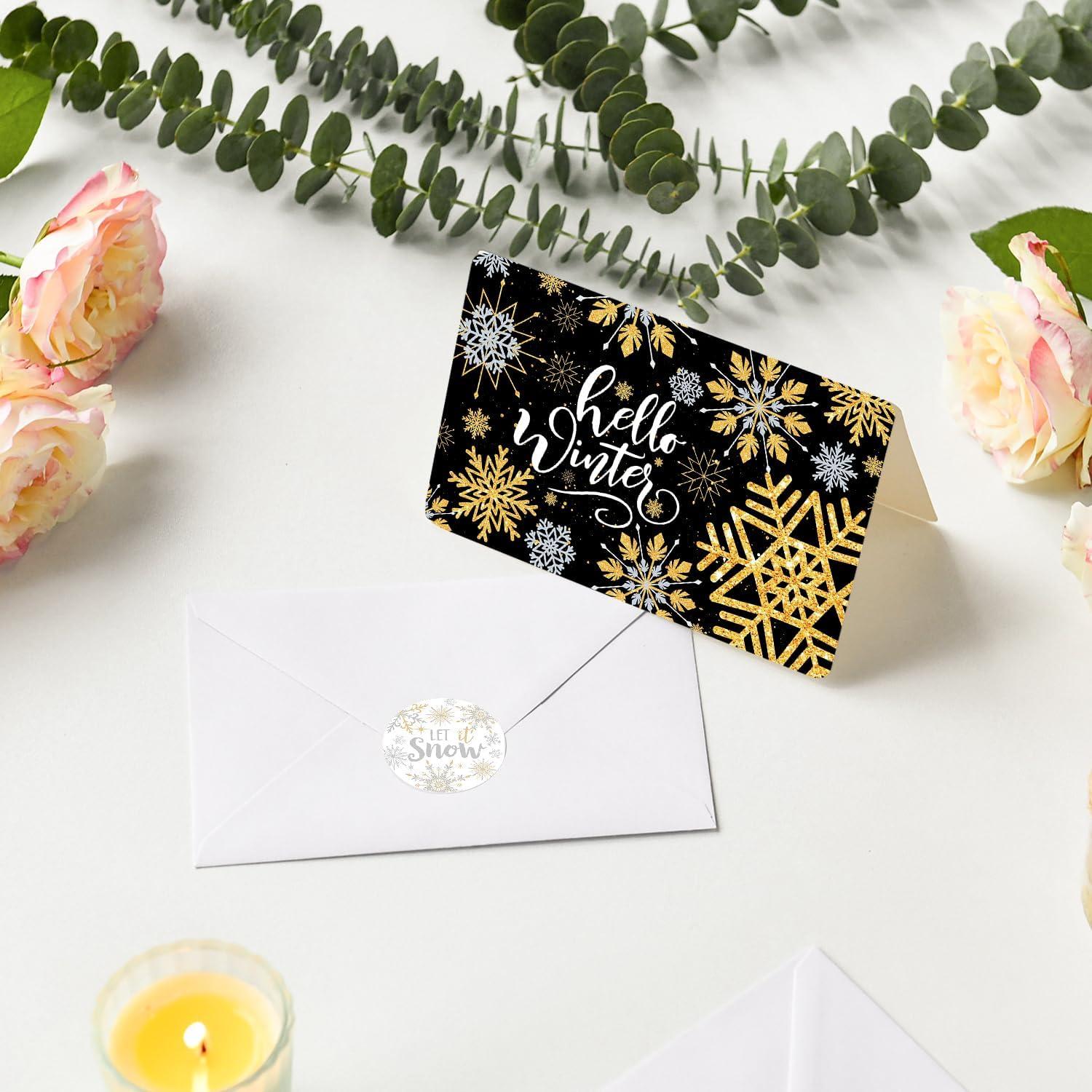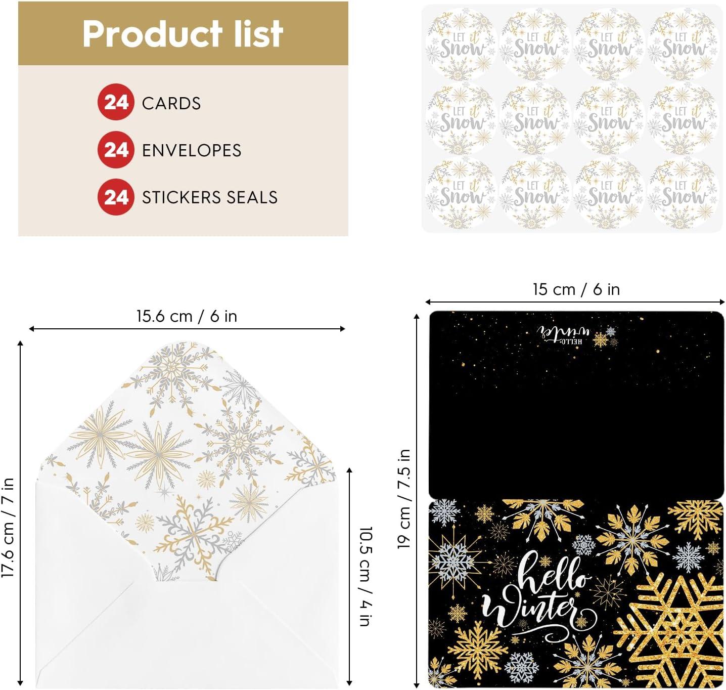 Artoid Mode 24 Pack Hello Winter Thank You Cards Golden Snowflakes Greeting Cards Gift With Envelope Sticker Blank Note Cards for Birthday Wedding Baby Shower Bridal Shower, 4 x 6 Inch