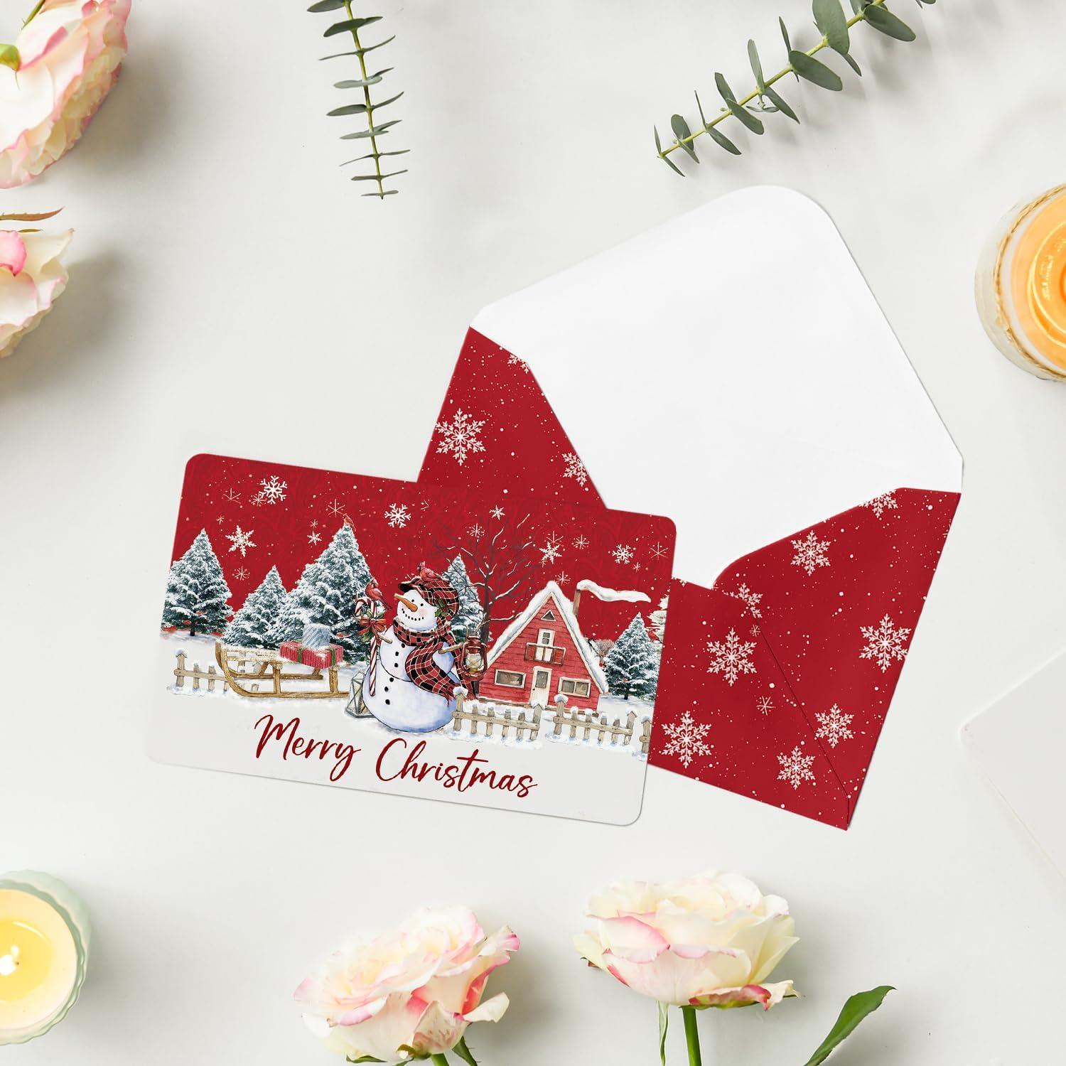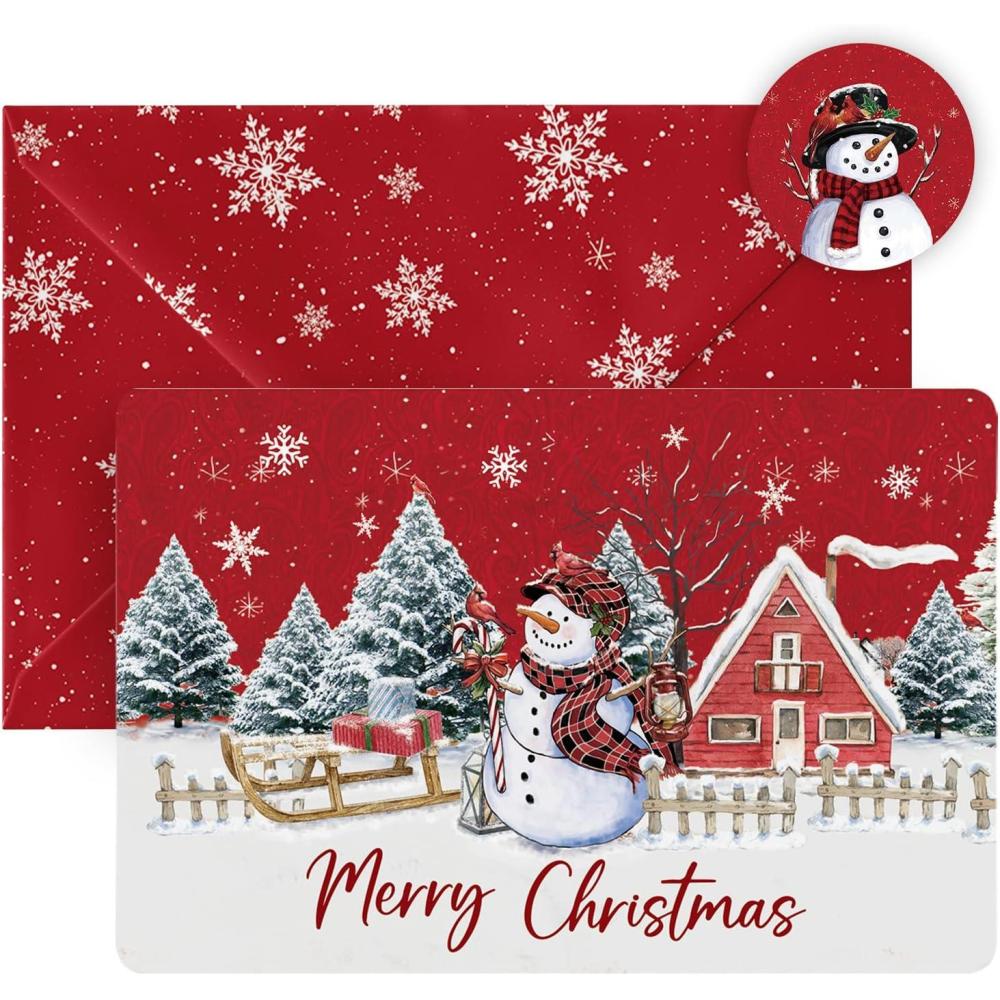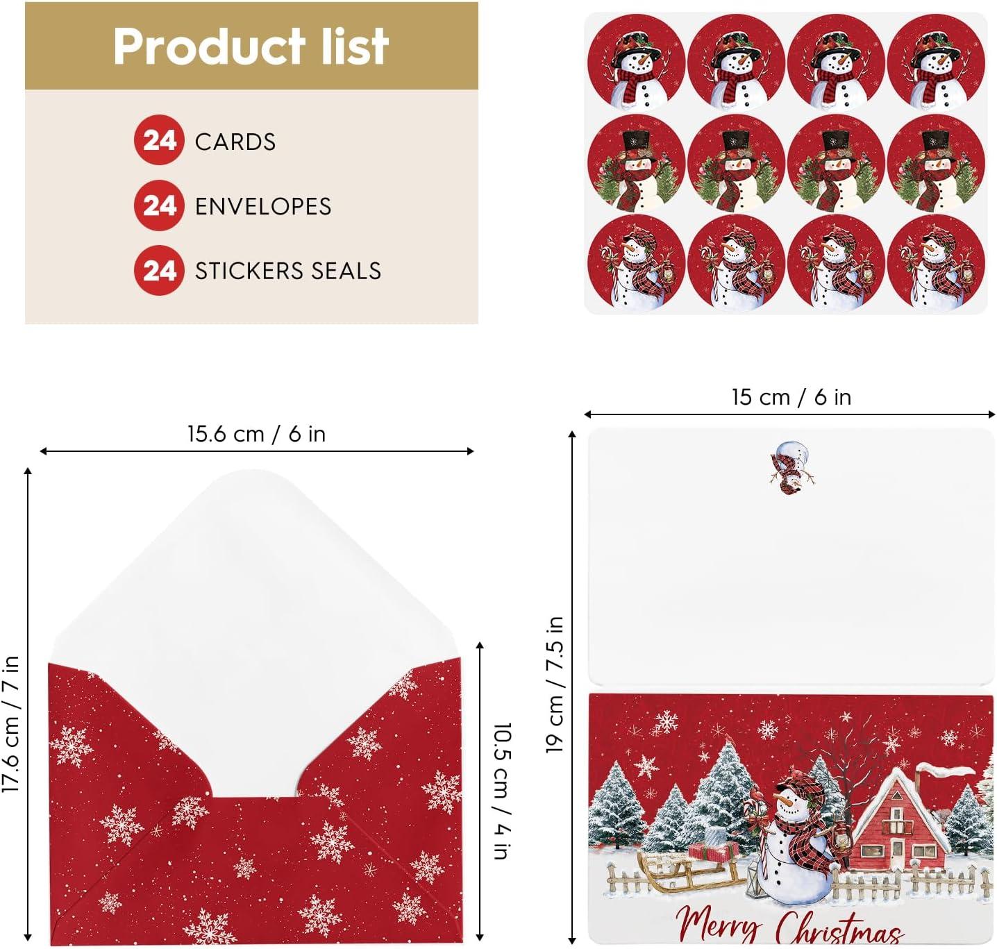 Artoid Mode 24 Pack Merry Christmas Thank You Cards House Snowman Xmas Tree Greeting Cards Gift With Envelope Sticker Blank Note Cards for Birthday Wedding Baby Shower Bridal Shower, 4 x 6 Inch