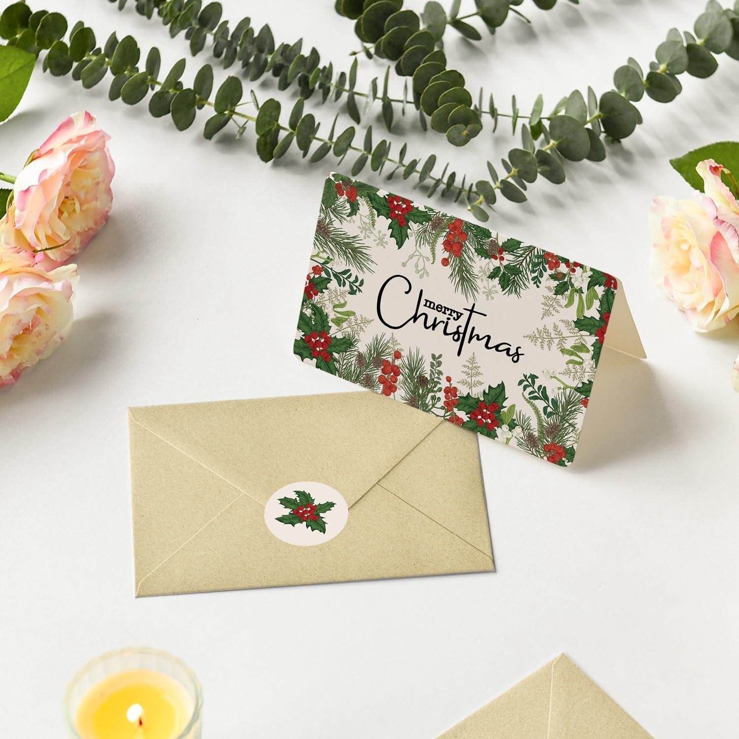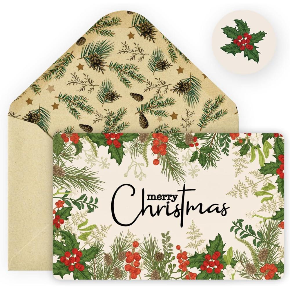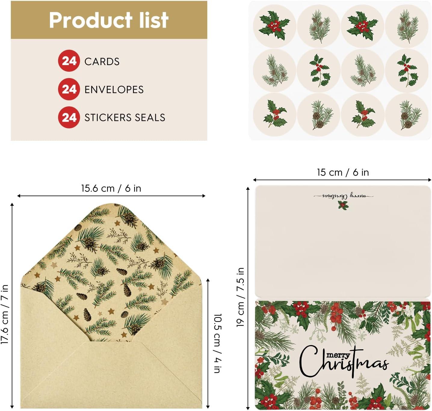 Artoid Mode 24 Pack Merry Christmas Thank You Cards Plant Holly Greeting Cards Gift With Envelope Sticker Blank Note Cards for Birthday Wedding Baby Shower Bridal Shower, 4 x 6 Inch