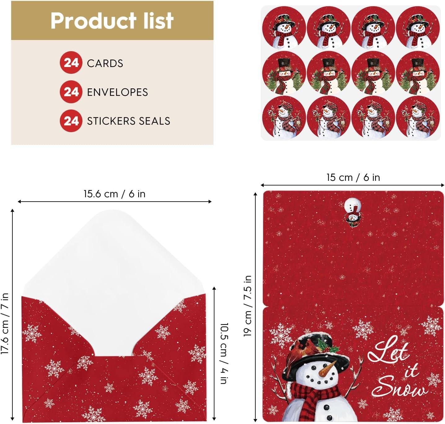 Artoid Mode 24 Pack Merry Christmas Thank You Cards Snowflake Snowman Xmas Tree Greeting Cards Gift With Envelope Sticker Blank Note Cards for Birthday Wedding Baby Shower Bridal Shower, 4 x 6 Inch