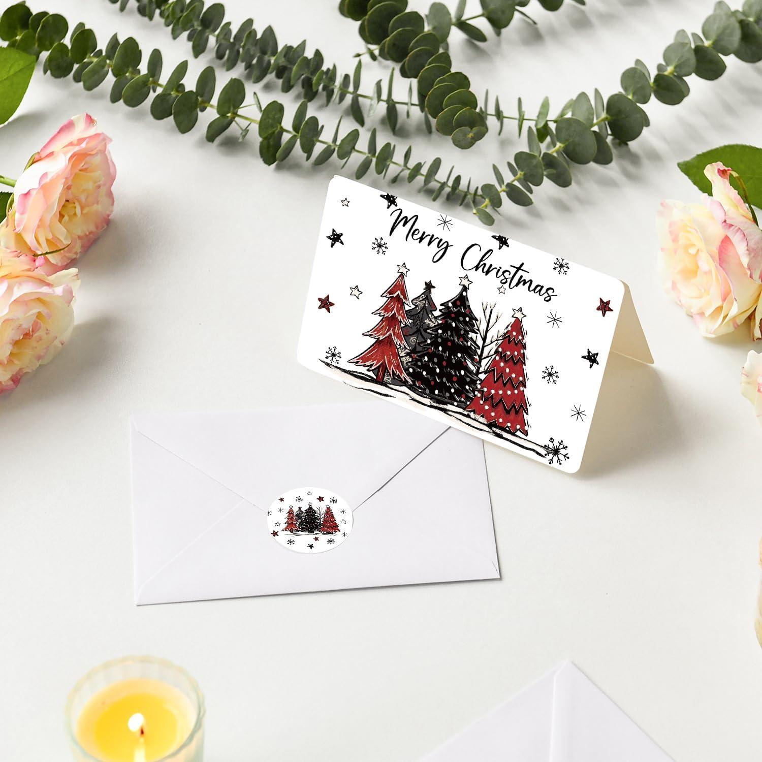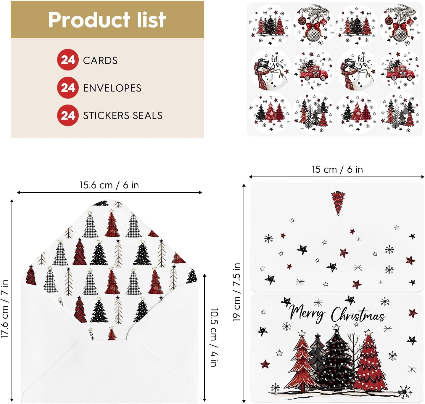 Artoid Mode 24 Pack Merry Christmas Thank You Cards Star Snowflake Xmas Tree Greeting Cards Gift With Envelope Sticker Blank Note Cards for Birthday Wedding Baby Shower Bridal Shower, 4 x 6 Inch