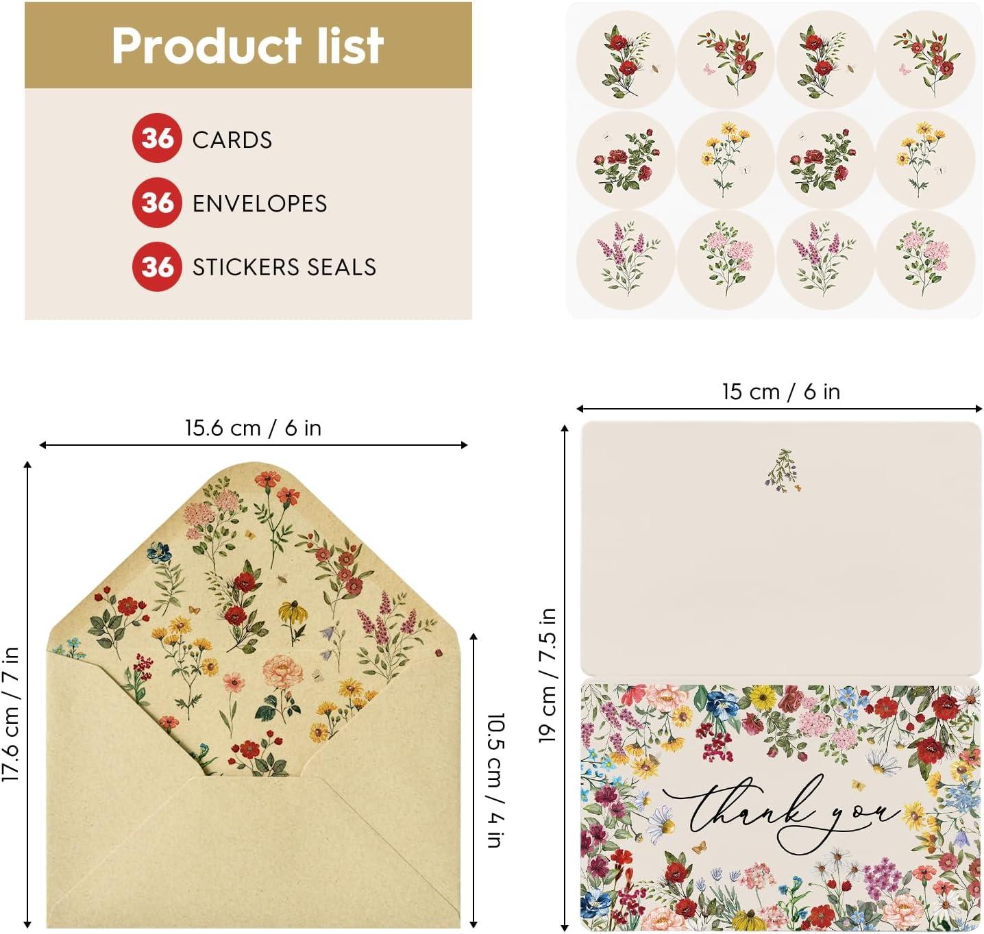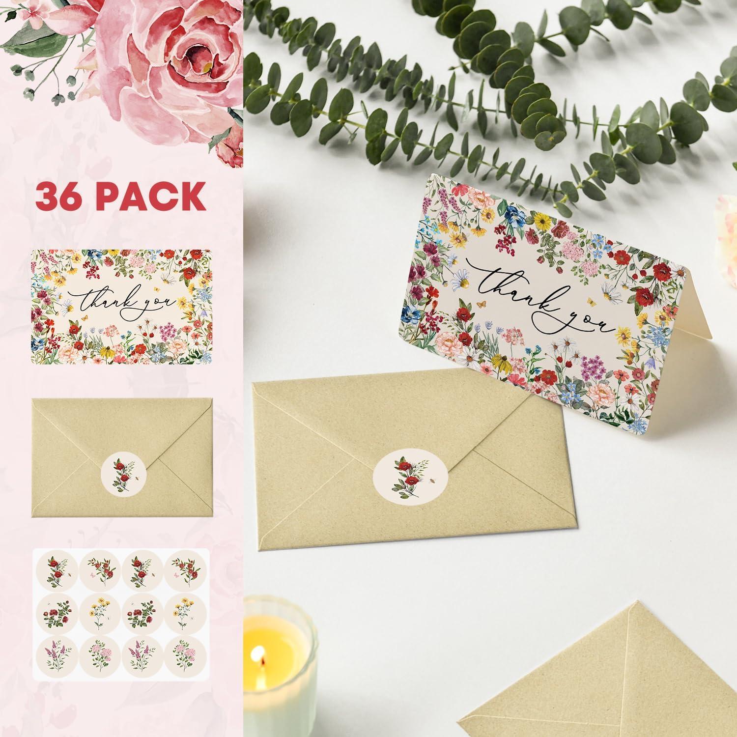 WHAT YOU WILL GET: 24 packs thank you cards with 24pcs printed envelopes and 24pcs stickers, sufficient to meet your different needs to give thanks.
