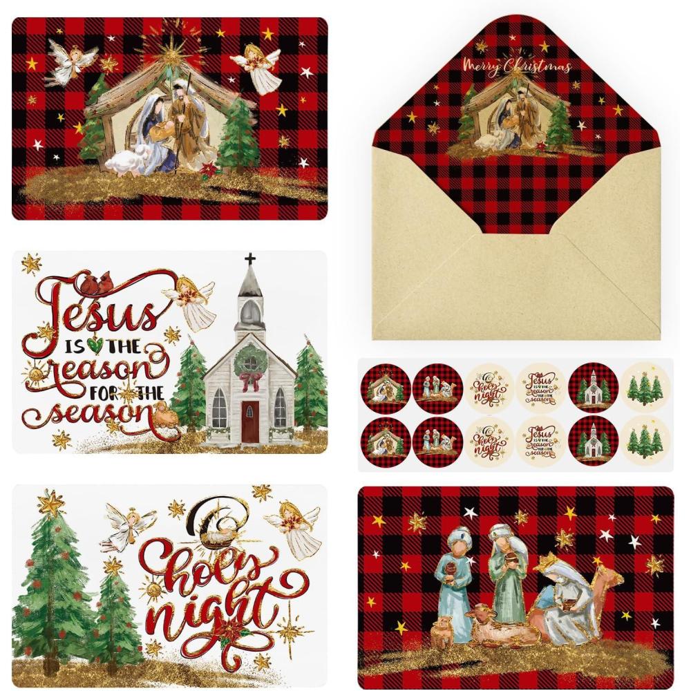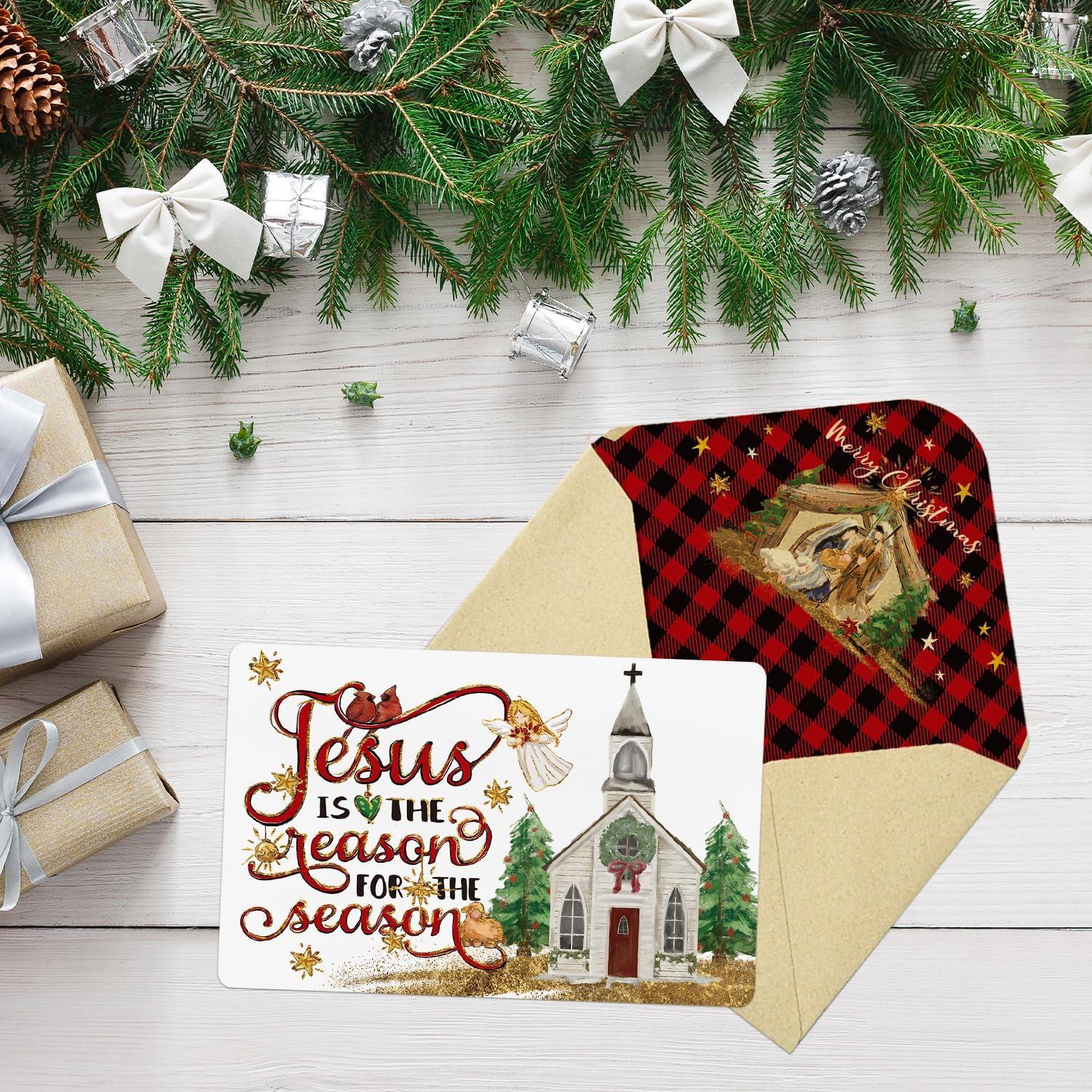 Artoid Mode 36 Pack Angels Cabin Christmas Thank You Cards Church Xmas Tree Greeting Cards Gift With Envelope Sticker Blank Note Cards for Birthday Wedding Baby Shower Bridal Shower, 4 x 6 Inch