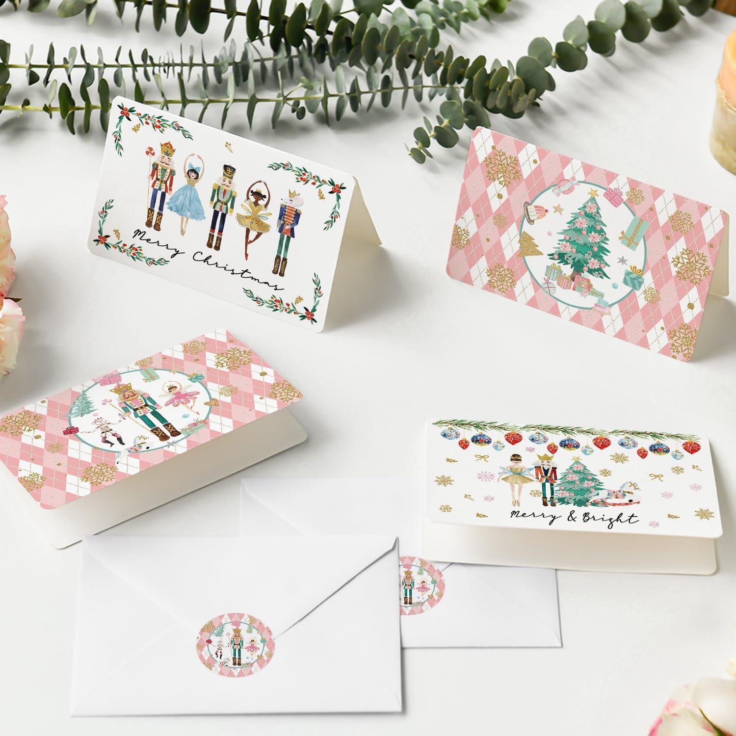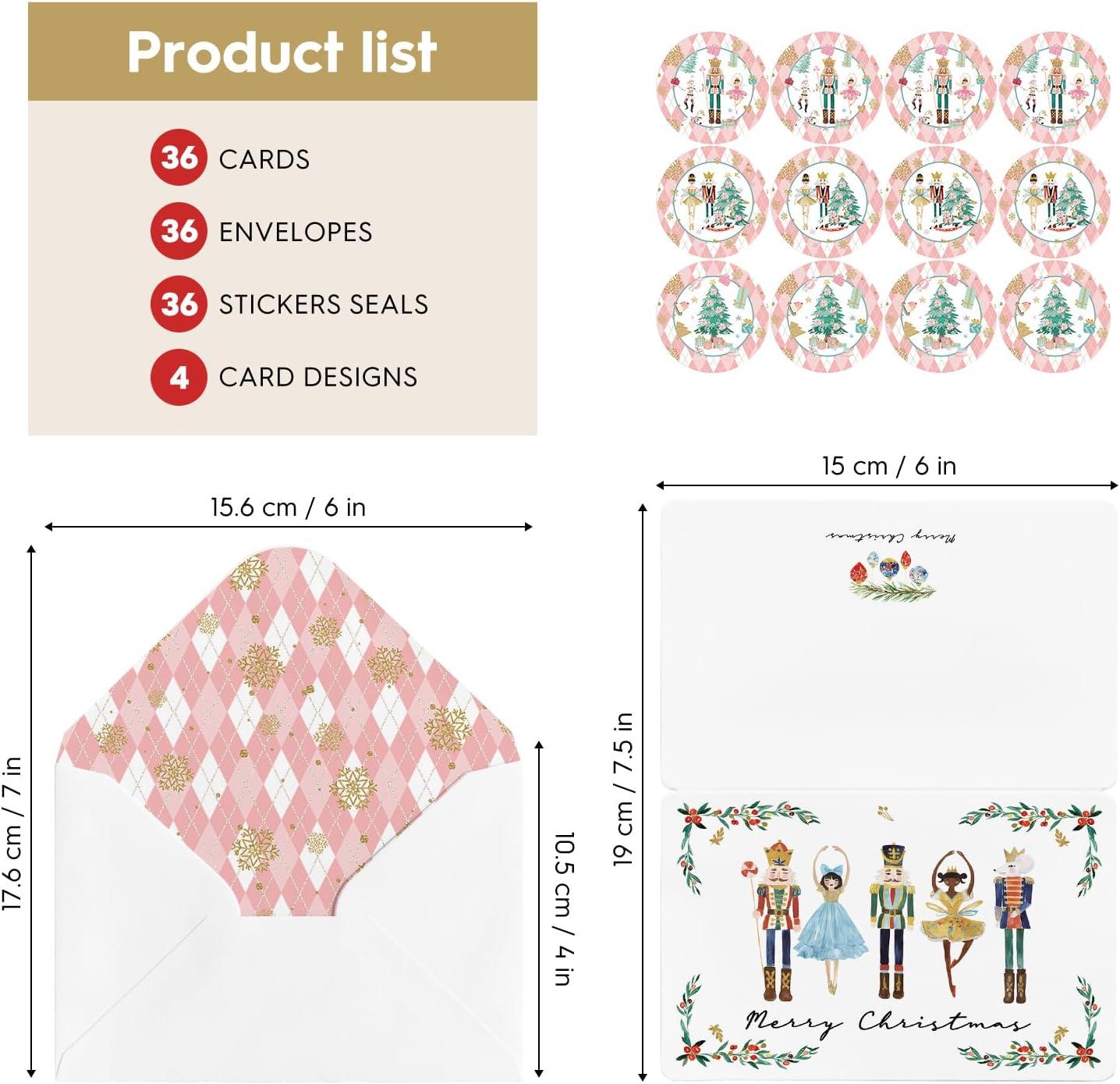 Artoid Mode 36 Pack Merry Christmas Thank You Cards Snowflake Holly Nutcrackers Greeting Cards Gift With Envelope Sticker Blank Note Cards for Birthday Wedding Baby Shower Bridal Shower, 4 x 6 Inch