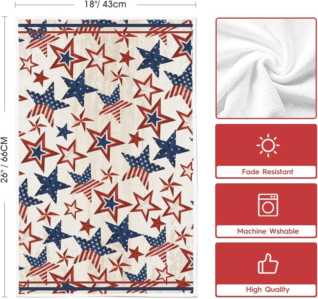Artoid Mode American Flag Stars 4th of July Kitchen Towels Dish Towels, 18×26 Inch God Bless Memorial Day Decoration Hand Towels Set of 2