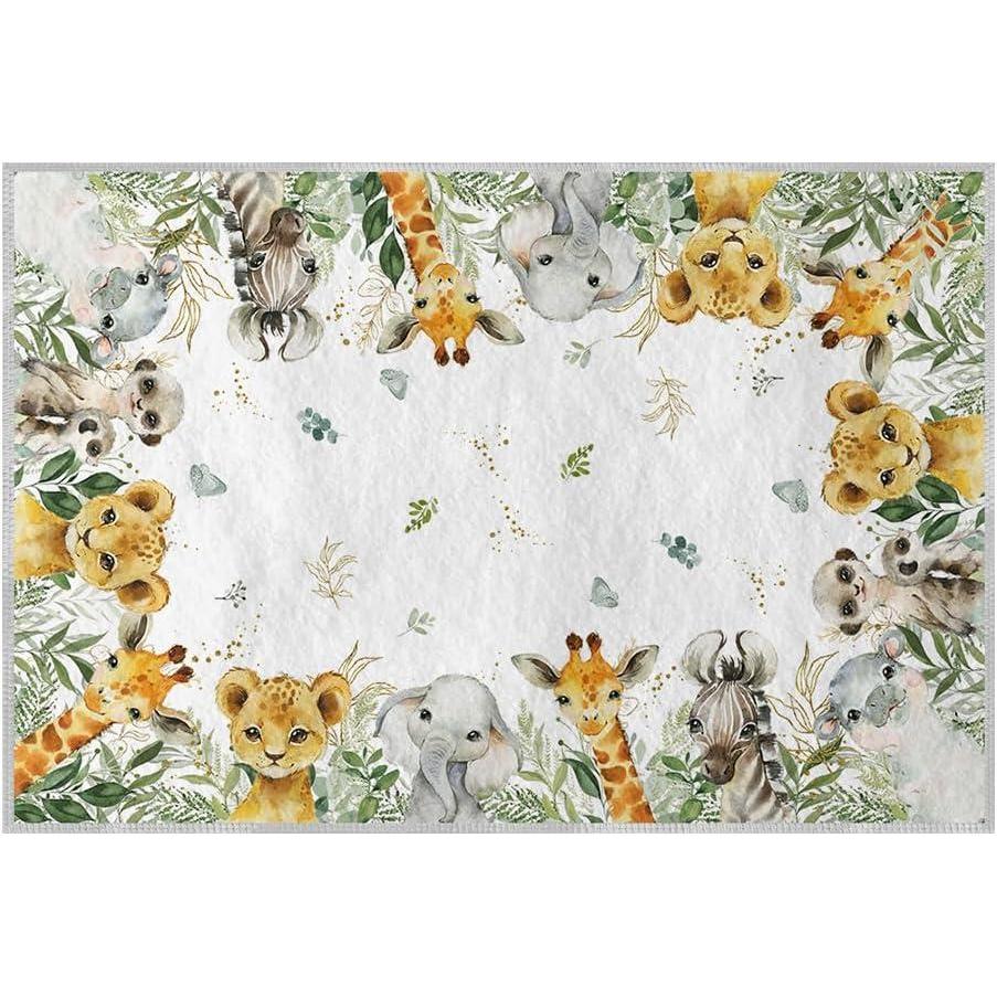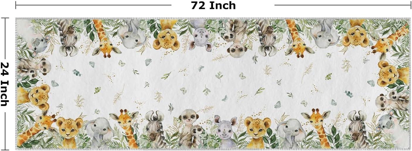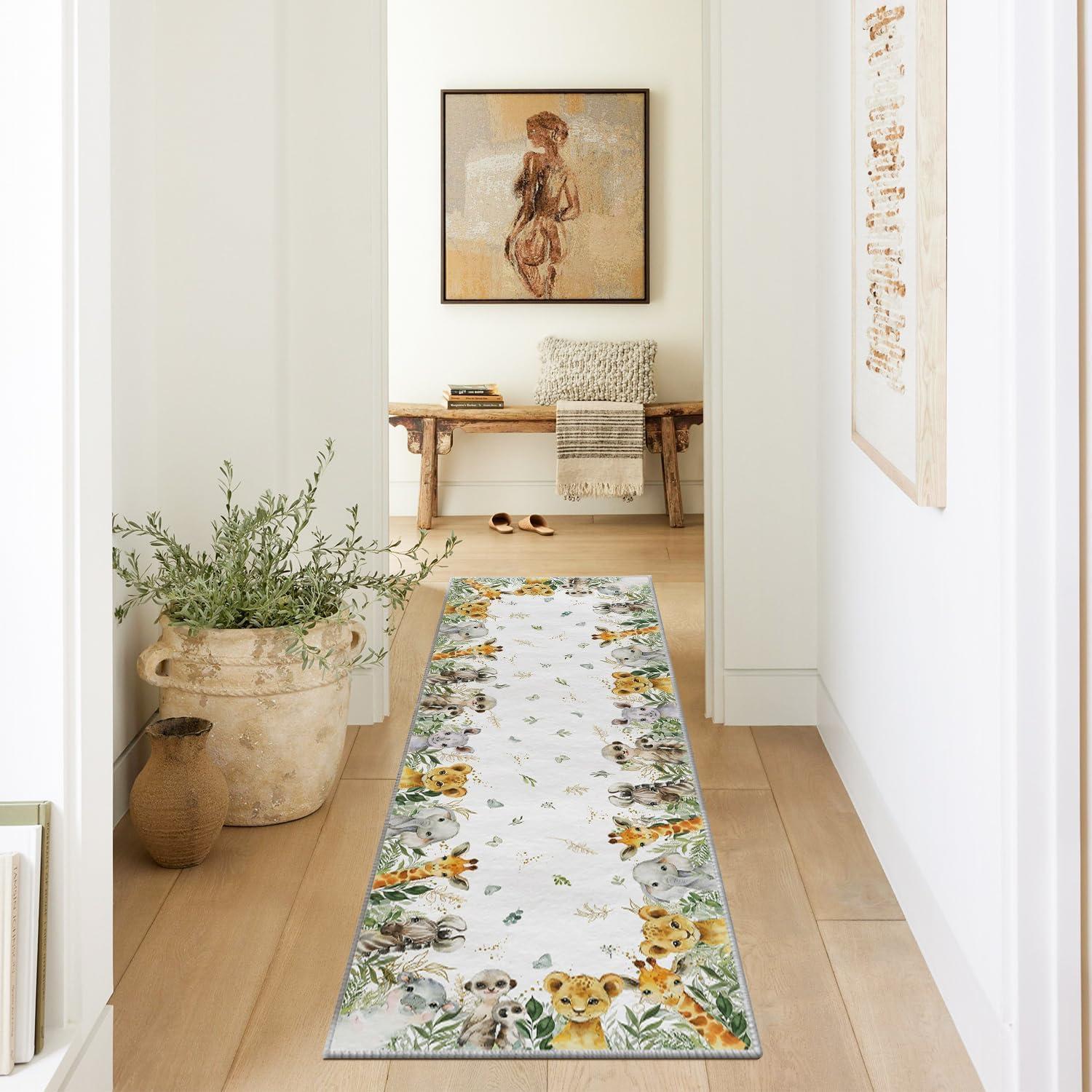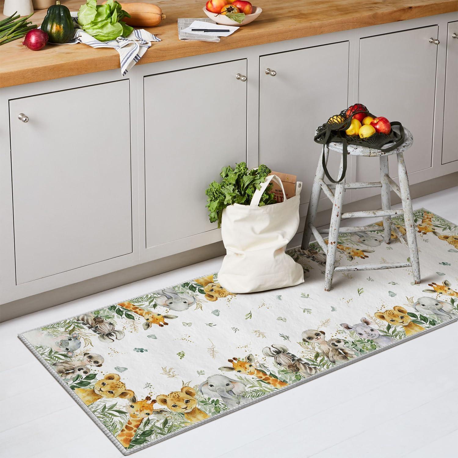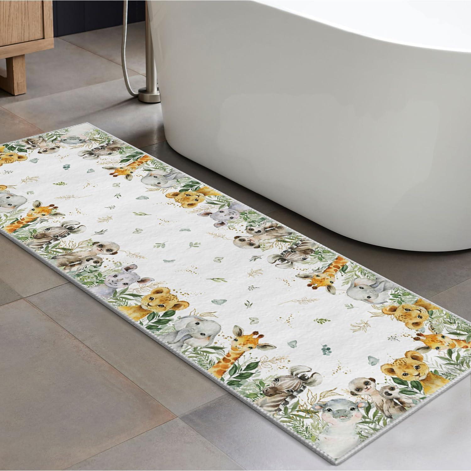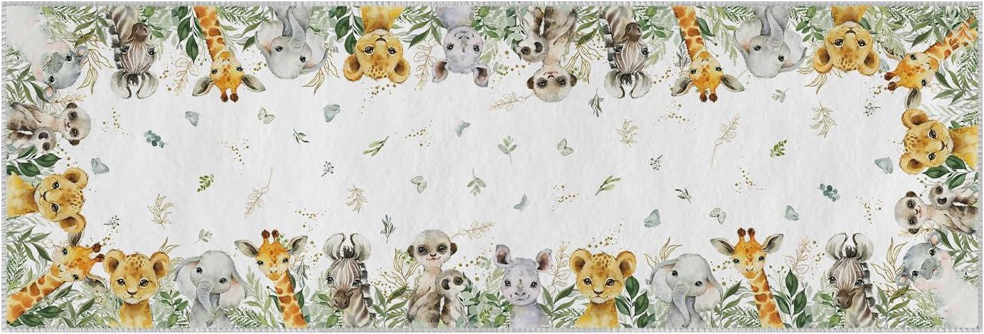 Artoid Mode Animals Elephant Giraffe Baby Shower Area Rug, Spring Birthday Home Decor Low-Profile Non-Slip Washable Runner Rug for Entryway Bedroom Living Room Laundry Room Indoor 2×6 Feet(Beige/Green)