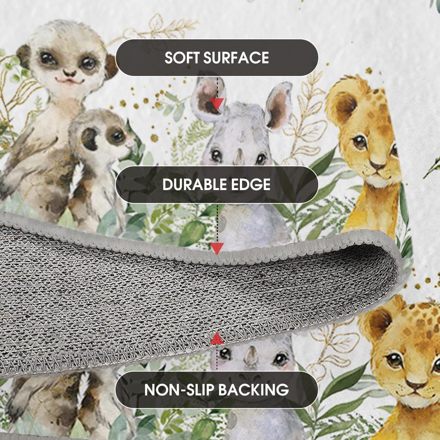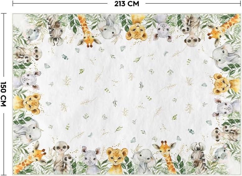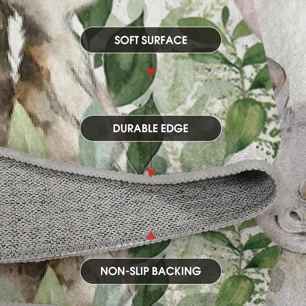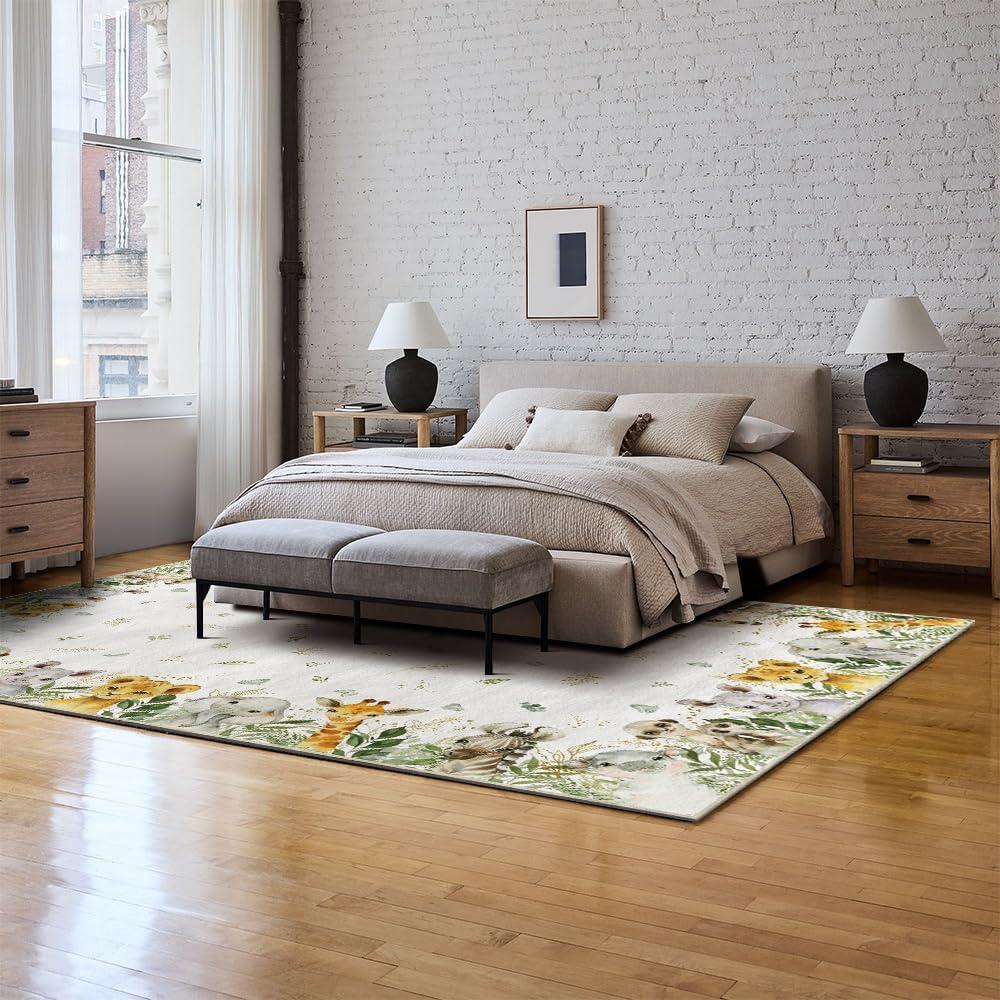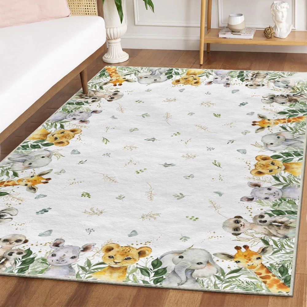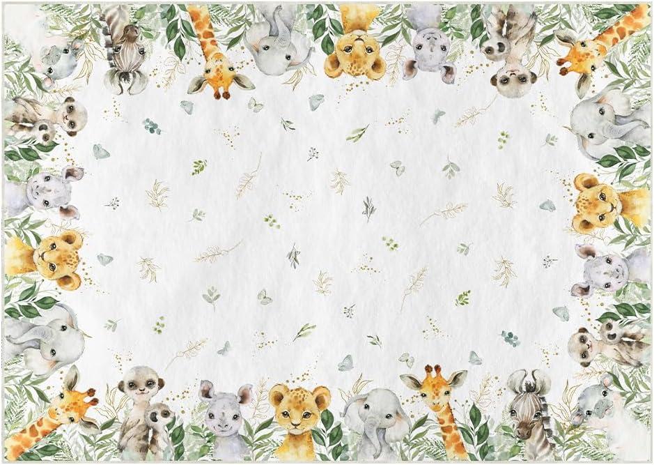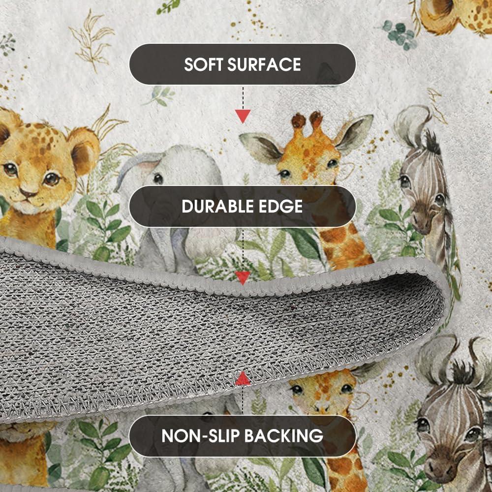 Artoid Mode Animals Elephant Giraffe Baby Shower Area Rug, Spring Birthday Home Decor Low-Profile Non-Slip Washable Runner Rug for Entryway Bedroom Living Room Laundry Room Indoor 2×6 Feet(Beige/Green)