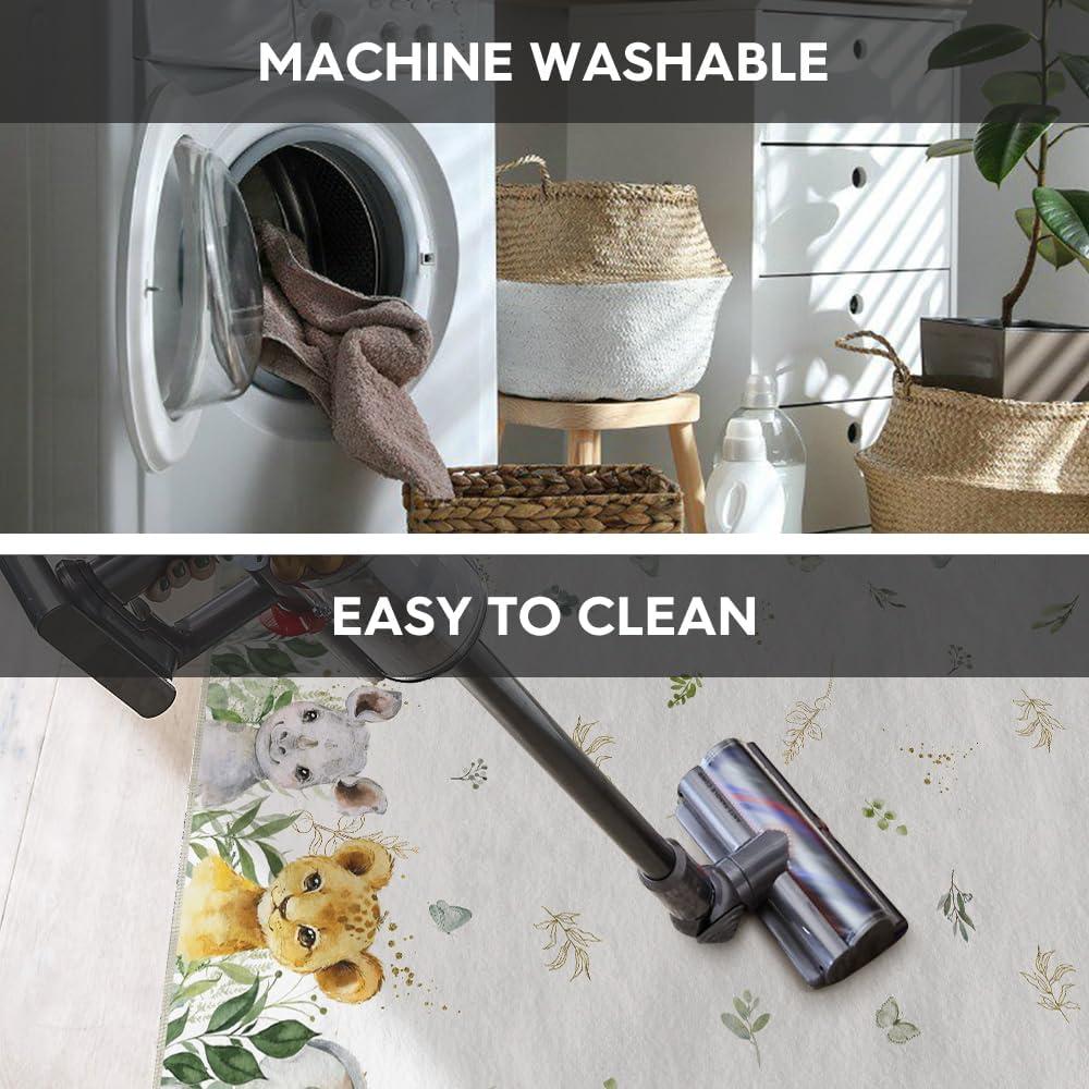 AREA RUGS WASHABLE:The washing machine and vacuum cleaner is friendly to these area rug. Rugs are quick and easy to clean and maintain which is durable, just regular vacuuming and gently blotting out minor stains with a mild detergent or carpet cleaner. A clean rug for living room can be obtained without taking a long time.