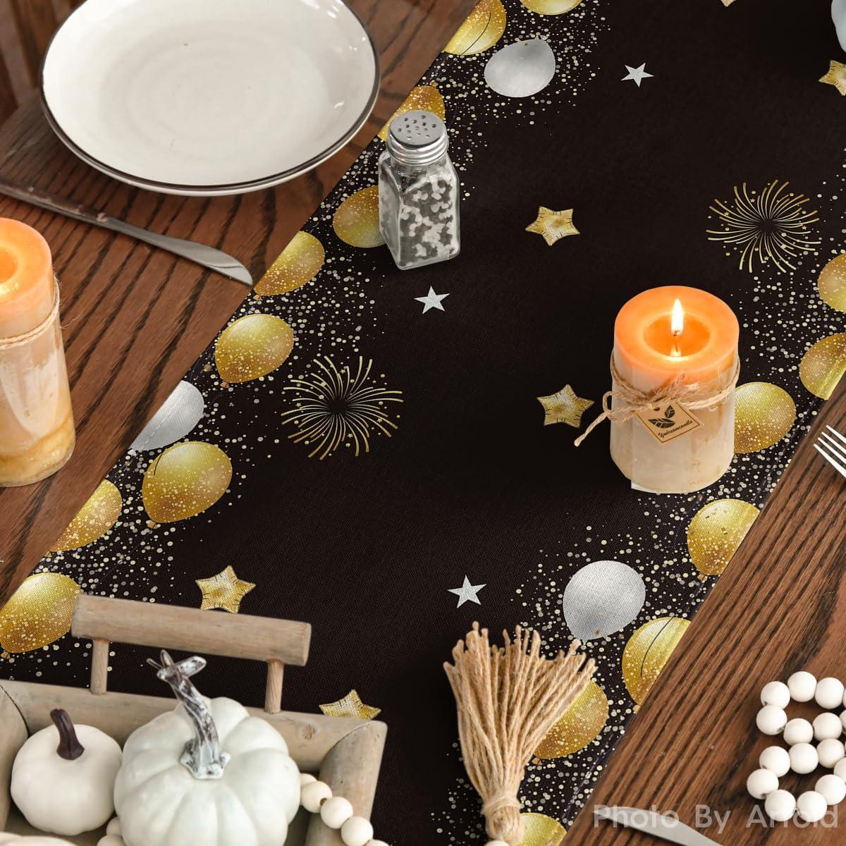 Artoid Mode Balloons Firework Happy Birthday Table Runner, Stars Holiday Kitchen Dining Table Decoration for Home Party Decor 13×72 Inch(Black)