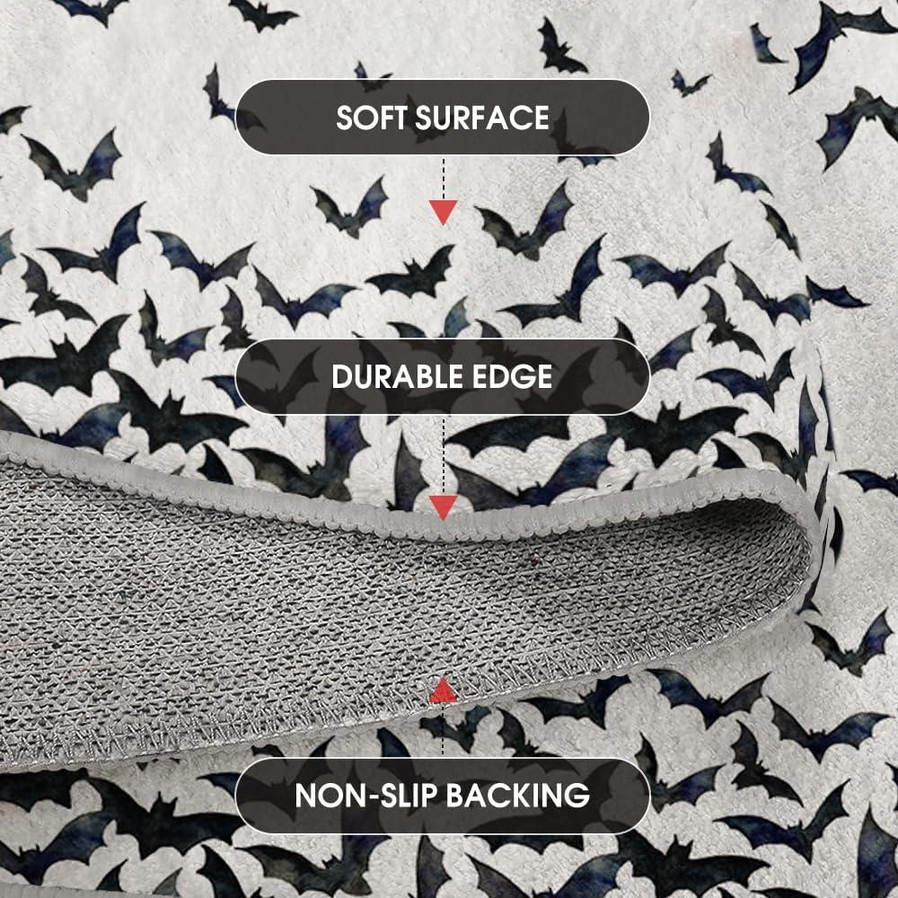 Artoid Mode Bat Halloween Door Mat, Party Home Decor Low-Profile Non-Slip Washable Throw Rug for Kitchen Entryway Front Door Bedroom Bathroom Indoor 2×3 Feet(White)