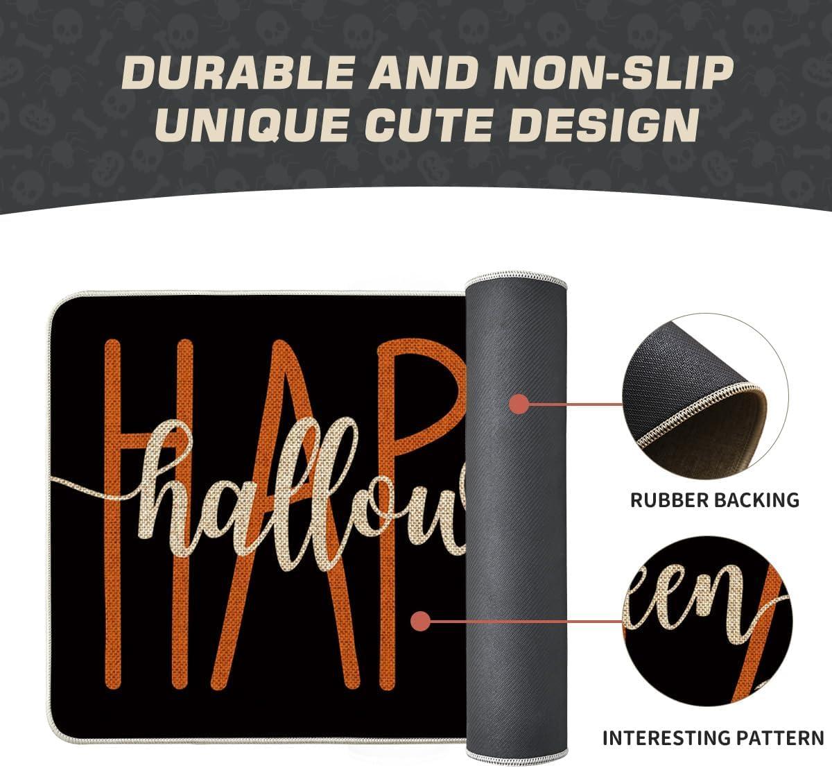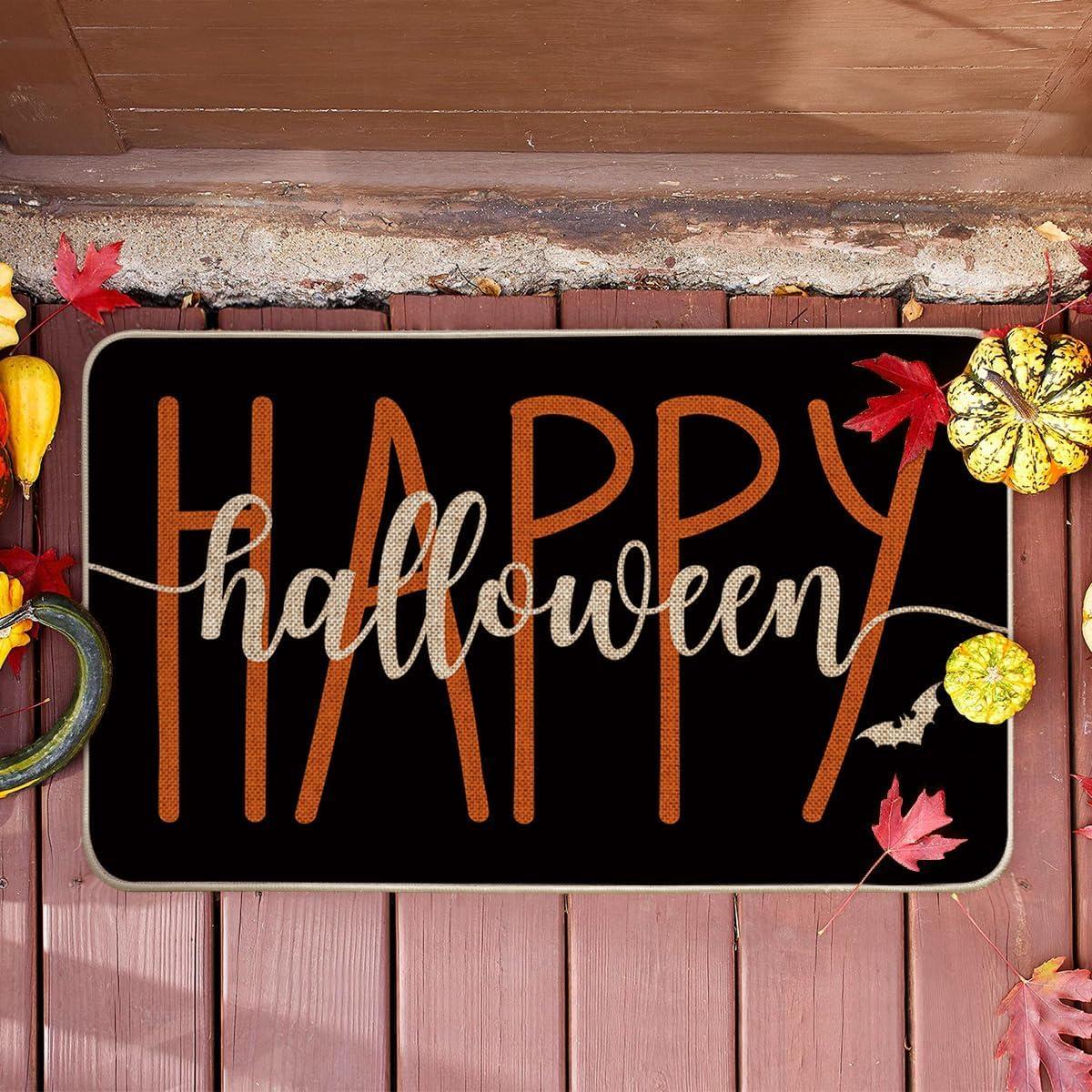Artoid Mode Bats Happy Black Halloween Decorative Doormat, Seasonal Low-Profile Floor Switch Mat for Indoor Outdoor 17×29 Inch(Black)