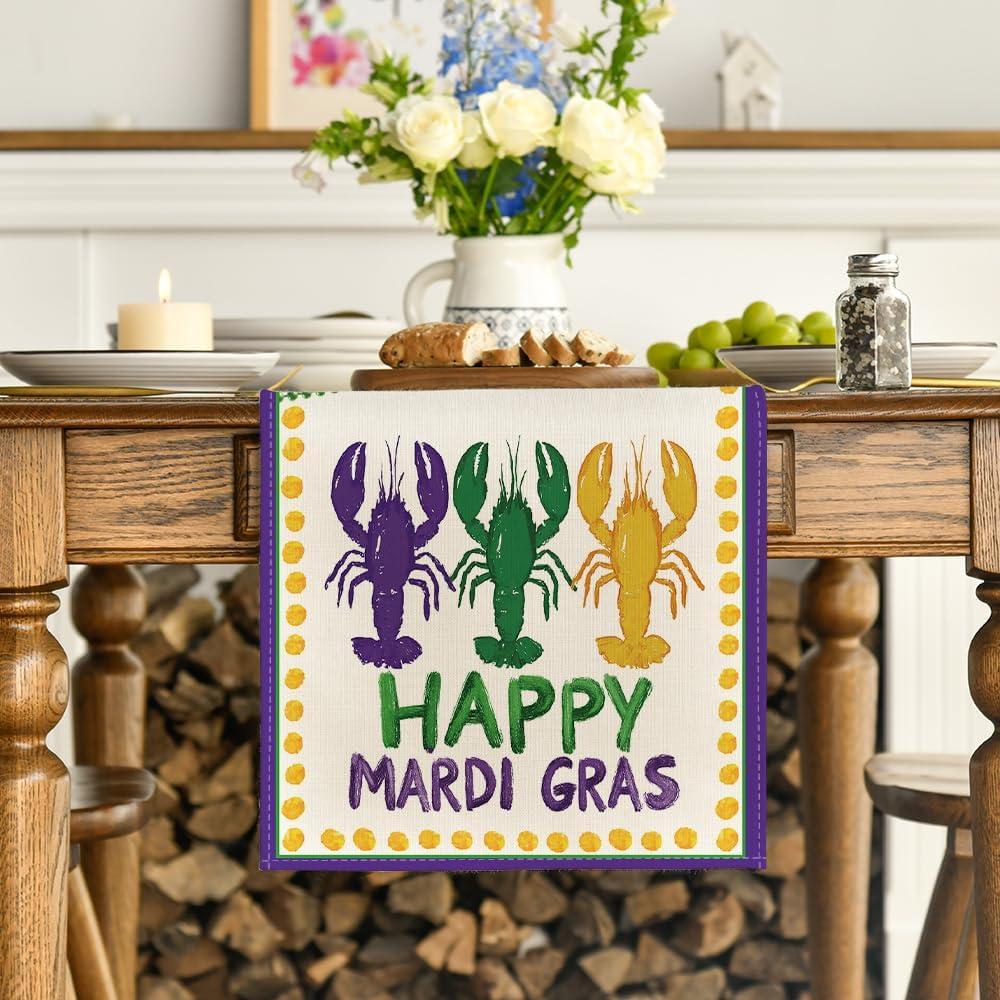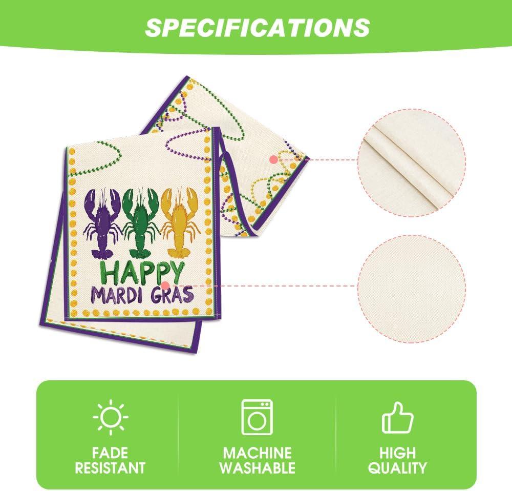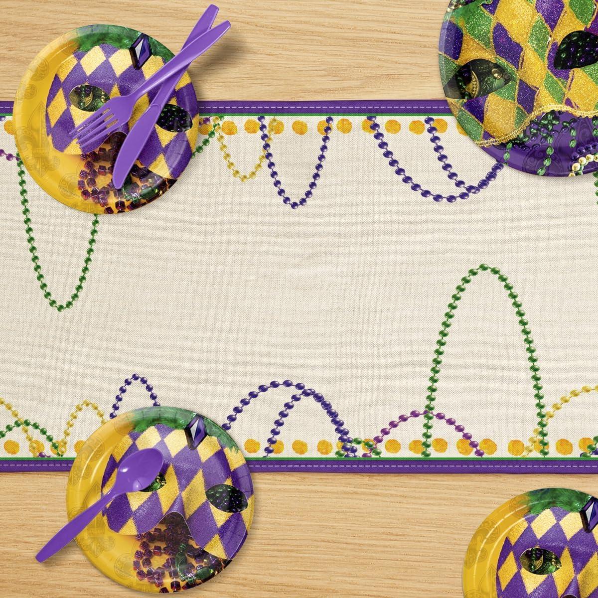 Artoid Mode Beads Happy Mardi Gras Carnival Table Runner, Seasonal Holiday Kitchen Dining Table Decoration for Indoor Outdoor Home Party Decor 13 x 72 Inch(Purple)