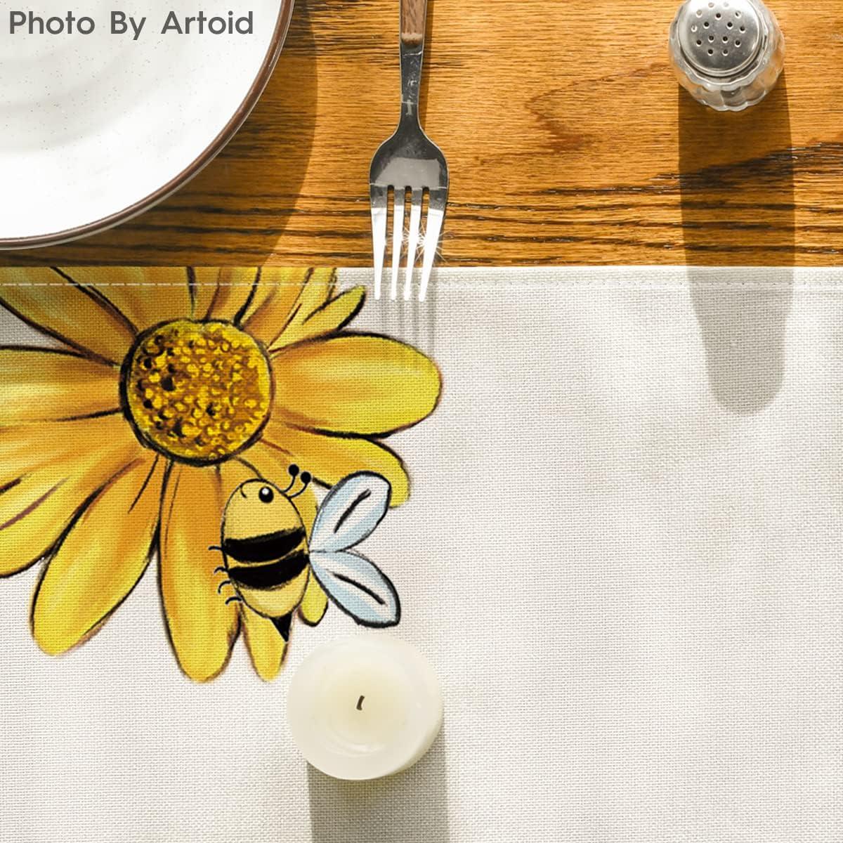 Artoid Mode Beige Bee Sunflower Table Runner, Seasonal Spring Summer Flowers Kitchen Dining Table Decoration for Home Party Decor 13 x 72 Inch(Beige)