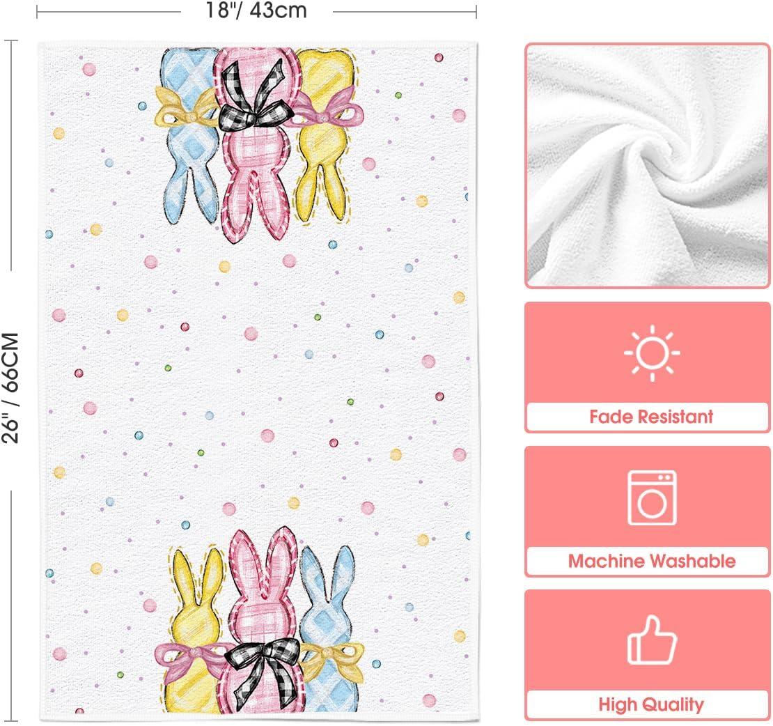 Artoid Mode Beige Bunny Eggs Happy Easter Kitchen Towels Dish Towels, 18×26 Inch Spring Farmhouse Bow Flowers Decoration Hand Towels Set of 2