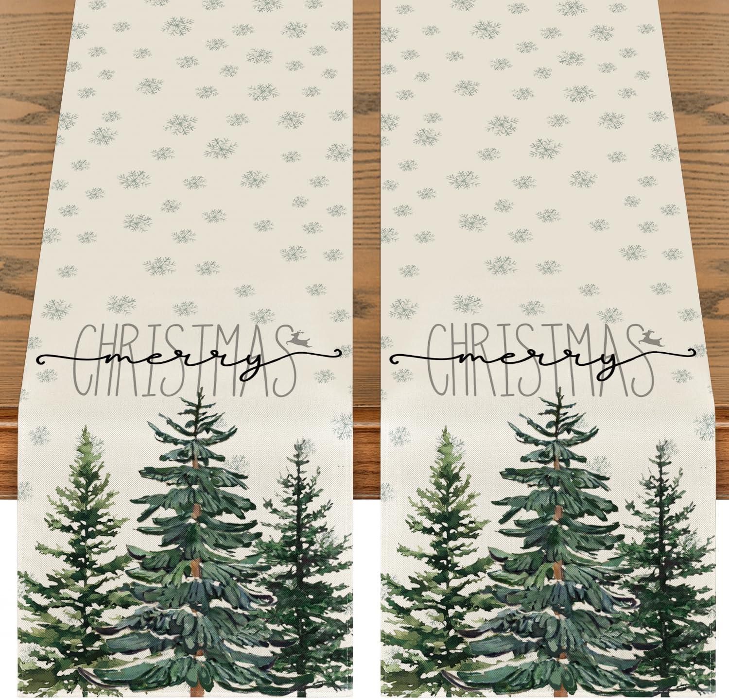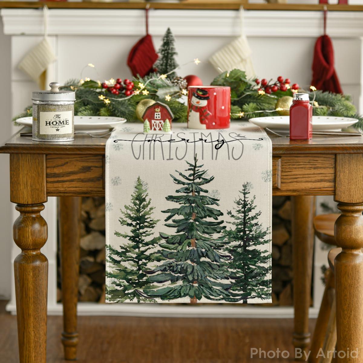 Artoid Mode Beige Pine Tree Snowflake Merry Christmas Table Runner, Seasonal Winter Xmas Holiday Kitchen Dining Table Decoration for Home Party Decor 13 x 72 Inch(Beige)