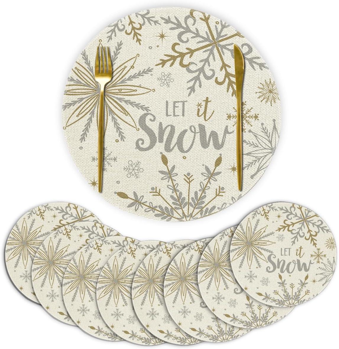 Artoid Mode Beige Snowflake Let It Snow Winter Placemats Set of 4, 14 Inch Seasonal Christmas Xmas Round Table Mats for Dining Decoration(Beige/Silver)