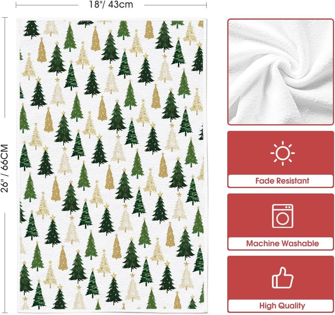 Artoid Mode Beige Star Xmas Tree Merry Christmas Kitchen Towels Dish Towels, 18×26 Inch Farmhouse Holiday Winter Decoration Cleaning Set of 2(Beige)