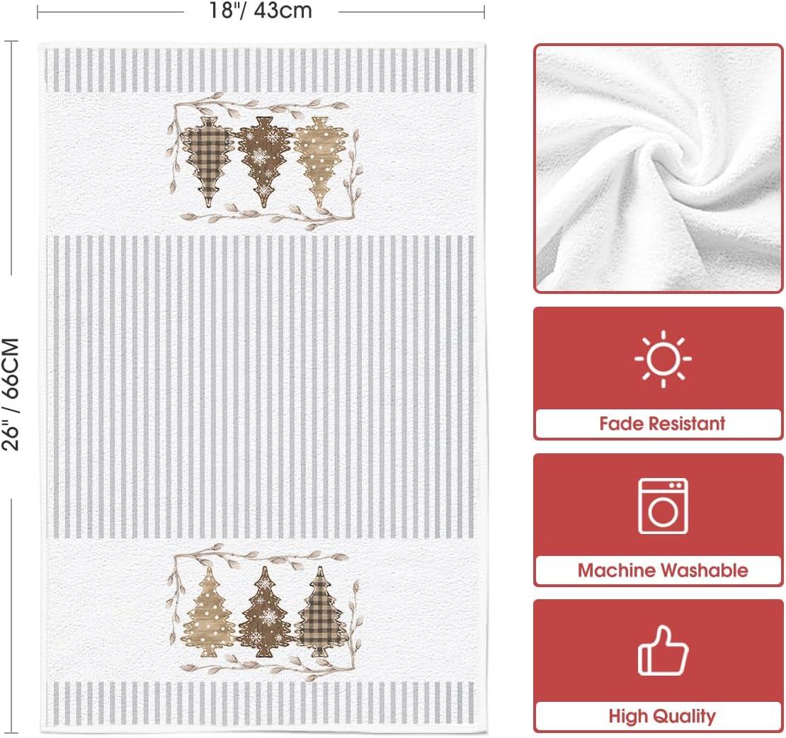 Artoid Mode Beige Stripes Deer Xmas Tree Christmas Kitchen Towels Dish Towels, 18×26 Inch Farmhouse Holiday Winter Decoration Cleaning Set of 2(Beige)