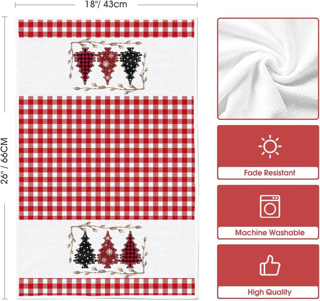 Artoid Mode Beige Stripes Deer Xmas Tree Christmas Kitchen Towels Dish Towels, 18×26 Inch Farmhouse Holiday Winter Decoration Cleaning Set of 2(Red)
