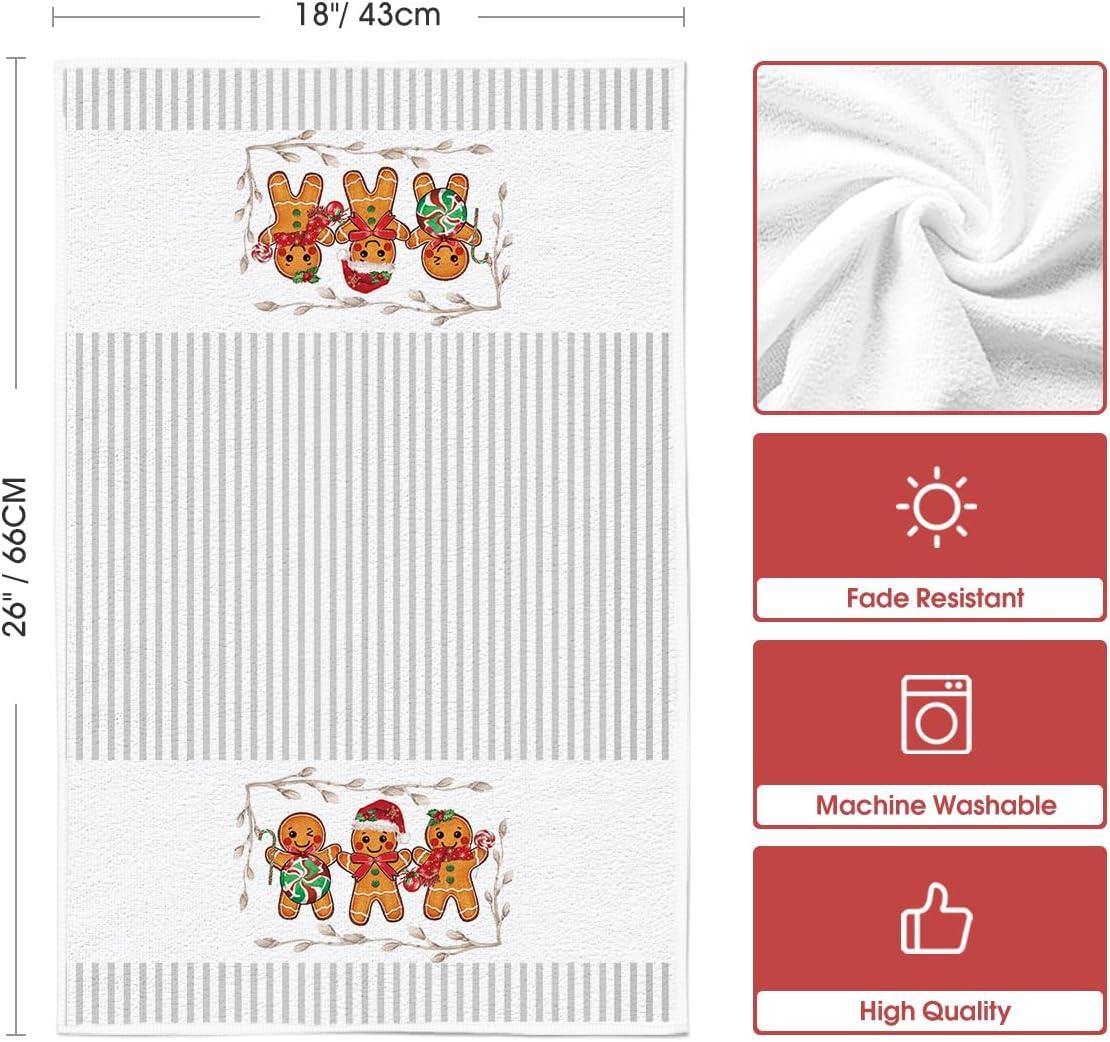 Artoid Mode Beige Stripes Gingerbread Candy Christmas Kitchen Towels Dish Towels, 18×26 Inch Farmhouse Holiday Winter Decoration Cleaning Set of 2(Beige)