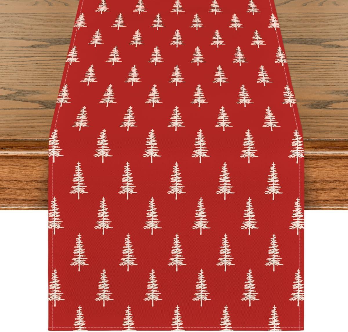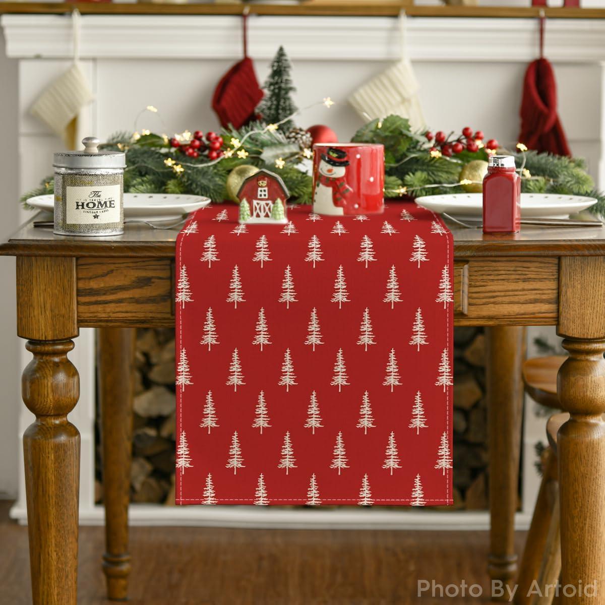 Artoid Mode Beige Xmas Tree Christmas Table Runner, Seasonal Winter Kitchen Dining Table Decoration for Home Party Decor 13×72 Inch(Red)