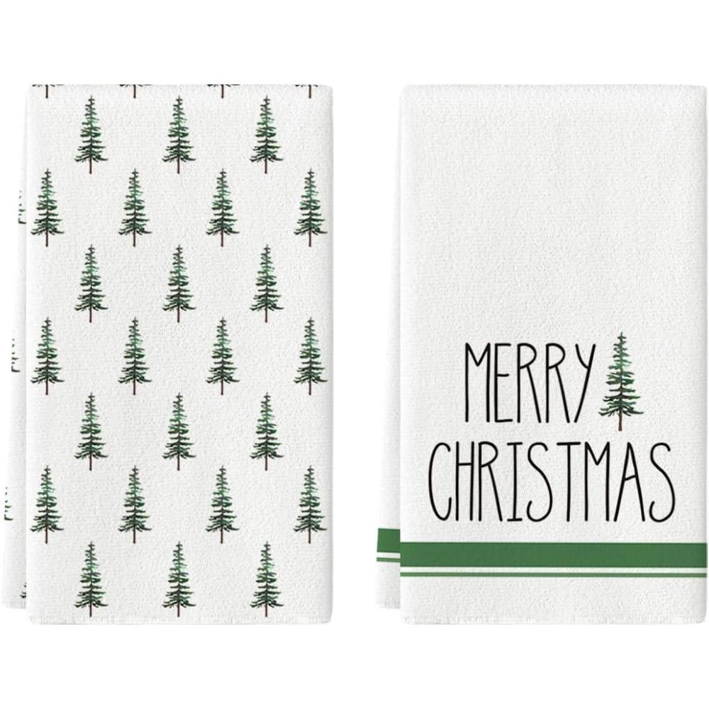 Artoid Mode Beige Xmas Tree Merry Christmas Kitchen Towels Dish Towels, 18×26 Inch Holiday Daily Winter Decoration Hand Towels Set of 2(Green)