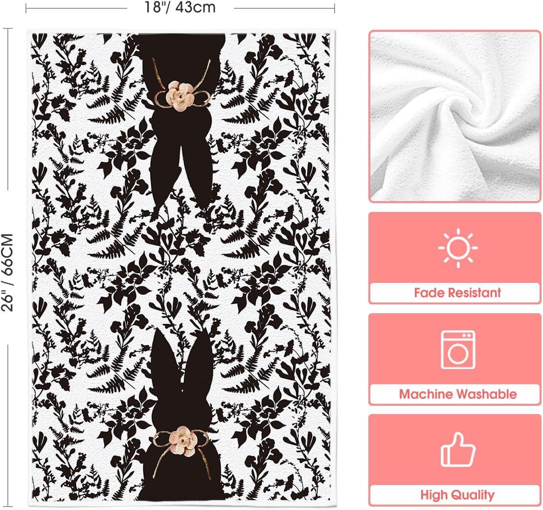 Artoid Mode Black Bunny Eggs Flower Easter Kitchen Towels Dish Towels, 18×26 Inch Spring Farmhouse Leaves Decoration Hand Towels Set of 2(Black)